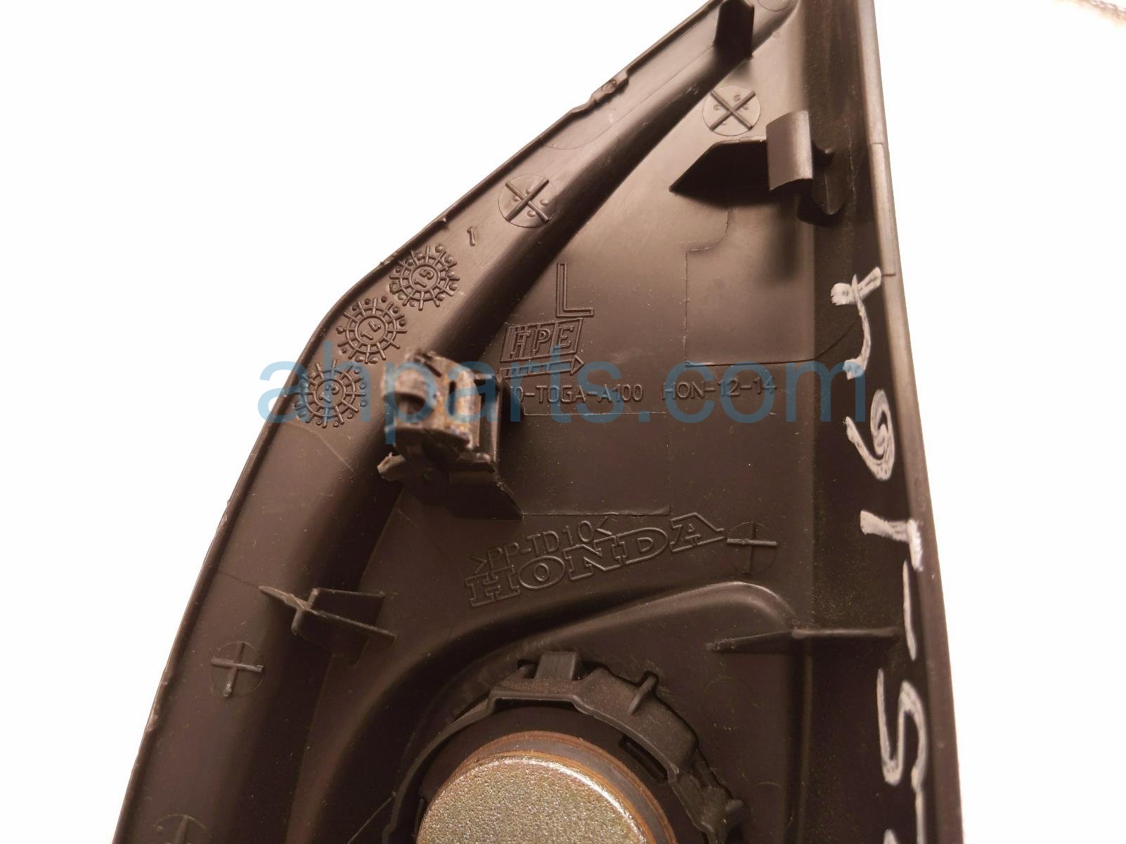 2016 Honda CR-V front driver tweeter speaker w/trim is a used item with a 1 year warranty. This OEM replacement front driver tweeter speaker w/trim is genuine and has part numbers 76270-T0G-A10ZL, 76270T0GA10ZL, 39120-T0A-A51, and 39120T0AA51. This Honda part sells for $20.