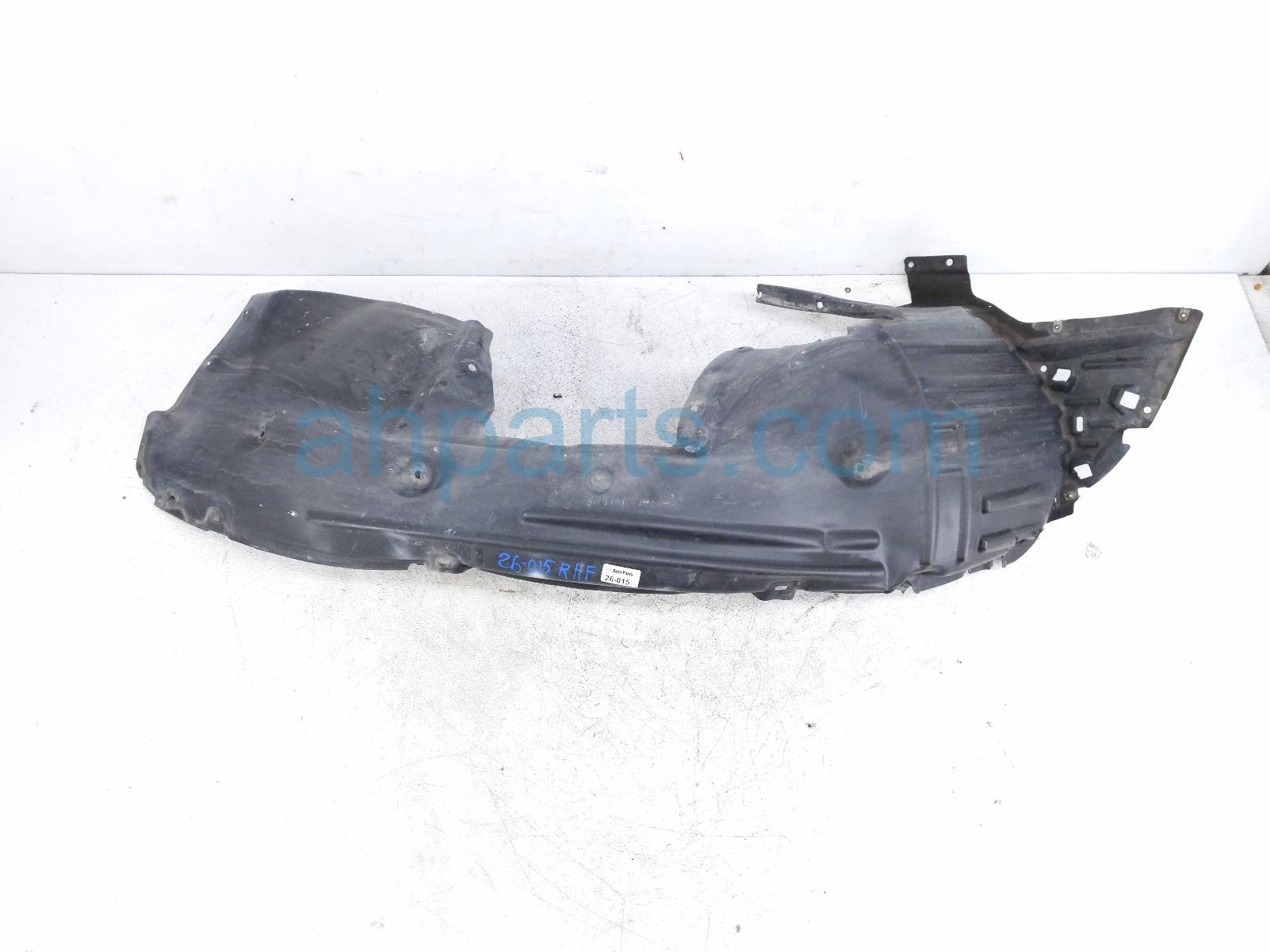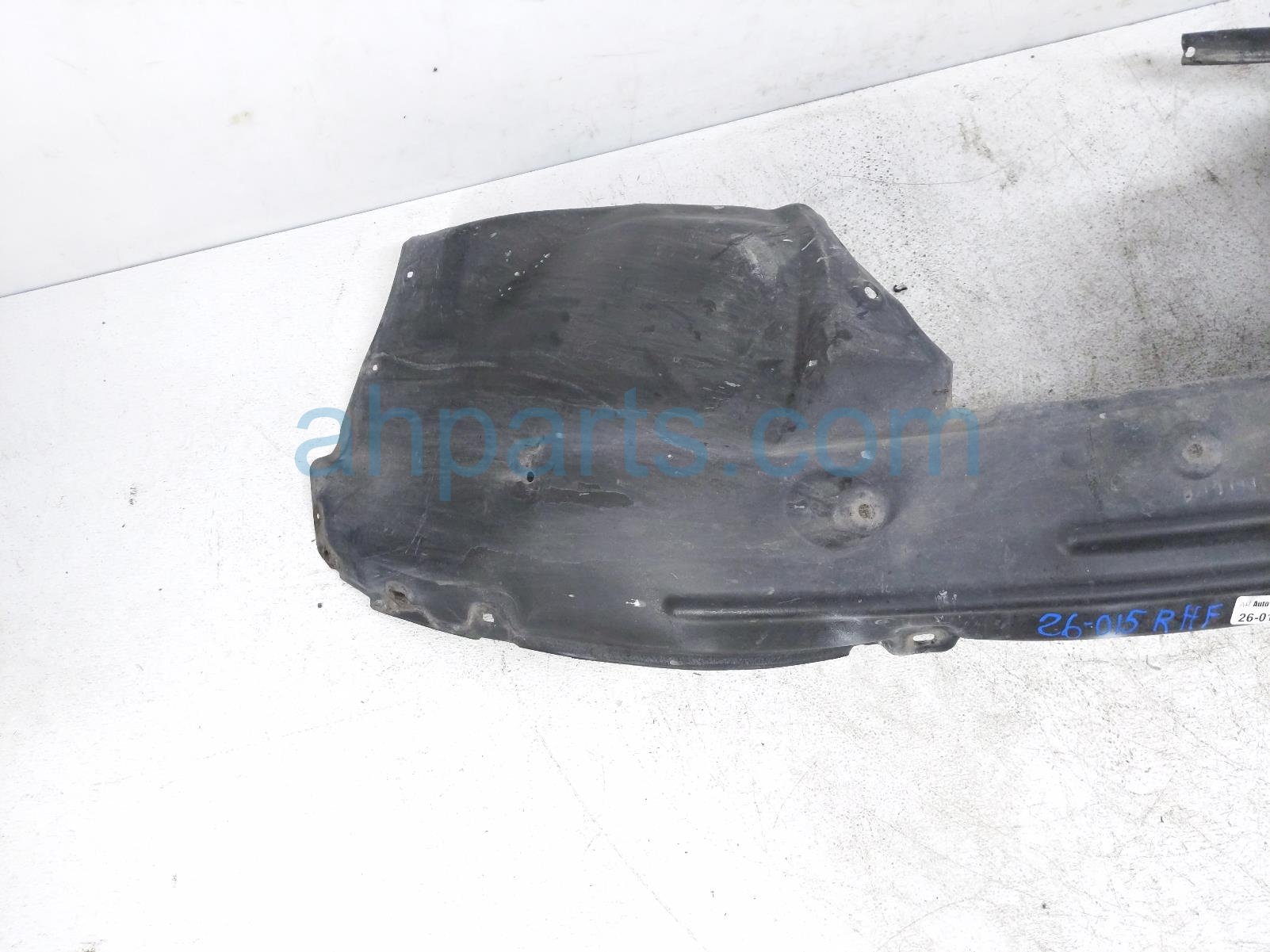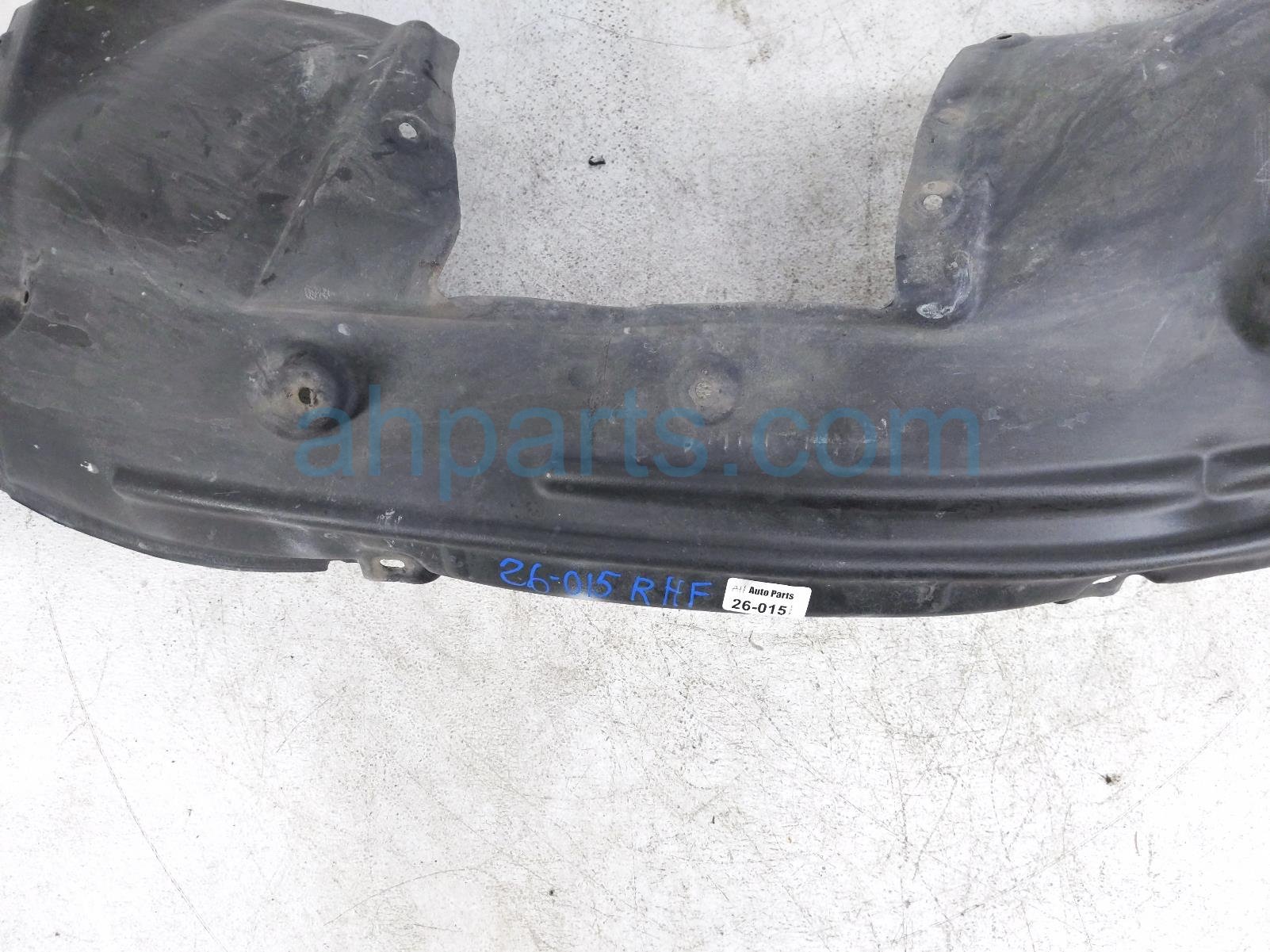 2016 Honda Pilot front passenger inner fender liner is a used item with a 1 year warranty. This OEM replacement front passenger inner fender liner is genuine and has part numbers 74101-TG7-A01, and 74101TG7A01. This Honda part is for sale (please call for pricing). This item has the following note: 'Item has a couple tear areas.'
