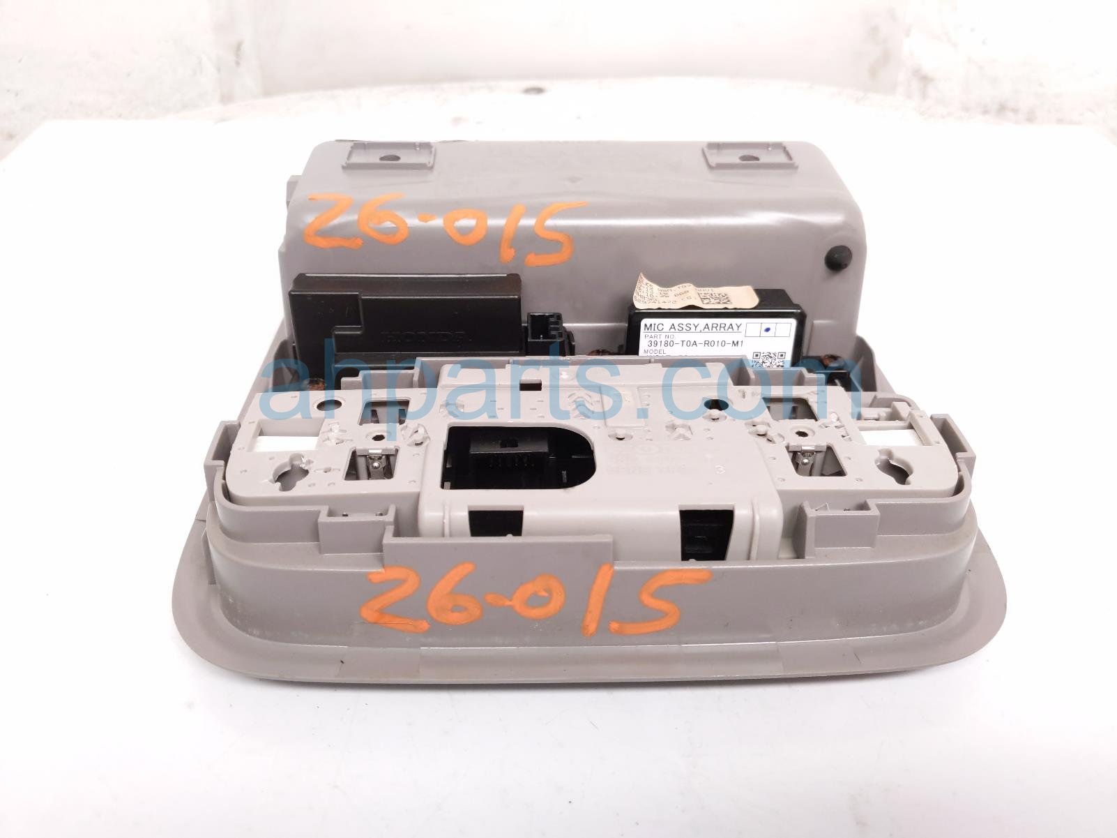 2016 Honda Pilot map light / roof console - grey is a used item with a 1 year warranty. This OEM replacement map light / roof console - grey is genuine and has part numbers 83250-TK8-A11ZE, 83250TK8A11ZE, 39180-T0A-R01, and 39180T0AR01. This Honda part is for sale (please call for pricing). This item has the following note: 'This item has some small scuffs.'
