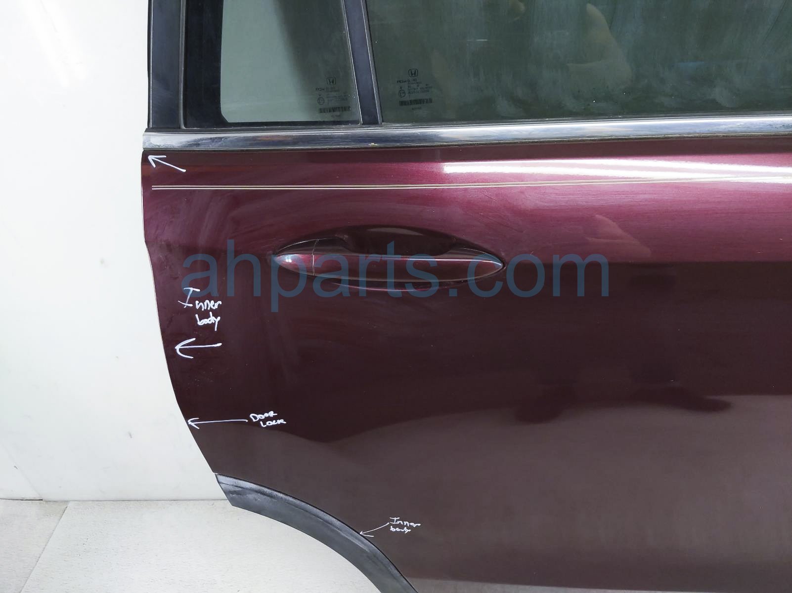 2016 Honda Pilot rear passenger door - red - no inside trim* is a used item with a 1 year warranty. This OEM replacement rear passenger door - red - no inside trim* is genuine and has part numbers 67510-TG7-A01ZZ, 67510TG7A01ZZ, 73400-TG7-A00, 73400TG7A00, 32753-TG7-A00, and 32753TG7A00. This Honda part sells for $675. This item has the following note: '*has some dents on the inside body frame inner body has dents.'