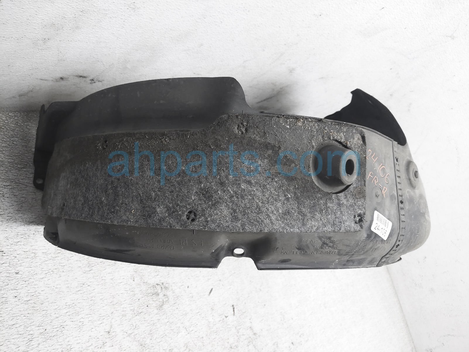 2016 Hyundai Veloster front passenger inner fender liner is a used item with a 1 year warranty. This OEM replacement front passenger inner fender liner is genuine and has part numbers 86816-2V300, and 868162V300. This Hyundai part sells for $75.