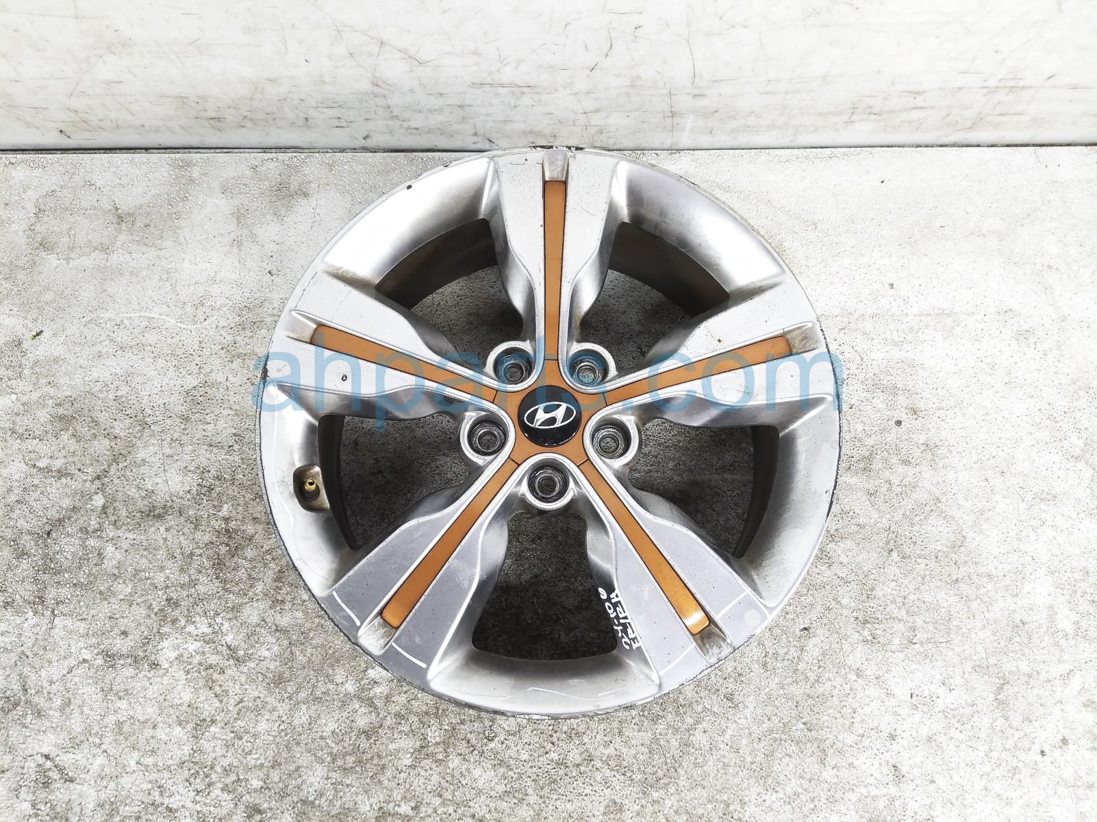 2016 Hyundai Veloster front passenger wheel / rim - some curb is a used item with a 1 year warranty. This OEM replacement front passenger wheel / rim - some curb is genuine and has part numbers 52905-2V750-EB, and 529052V750EB. This Hyundai part sells for $149.