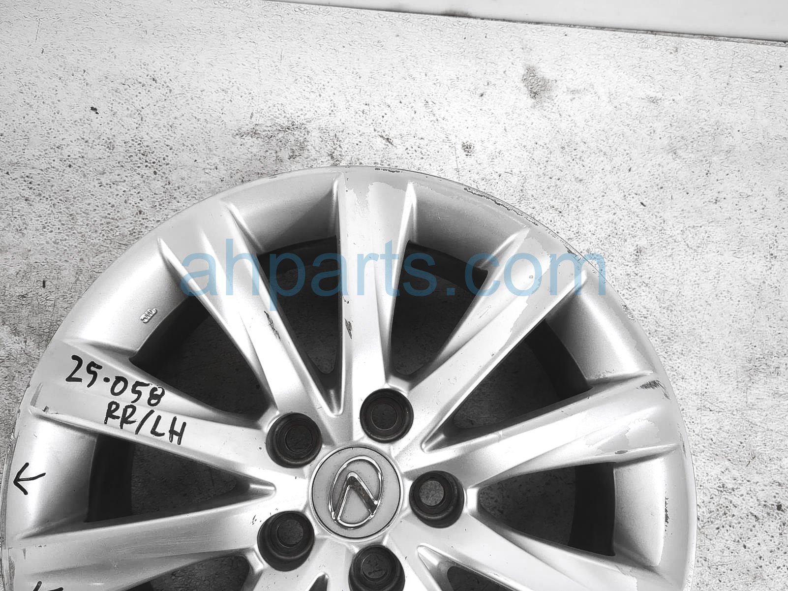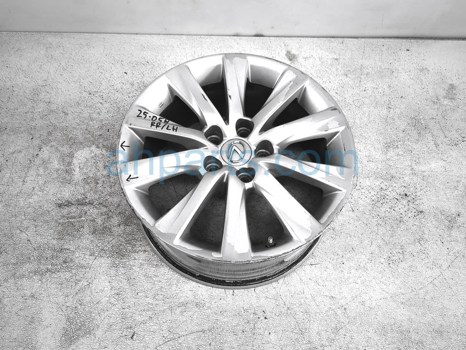 This item has the following note: 'This item has curb rash on the outer edge and some curb rash on the face with the paint fading/peeling - grade c.'