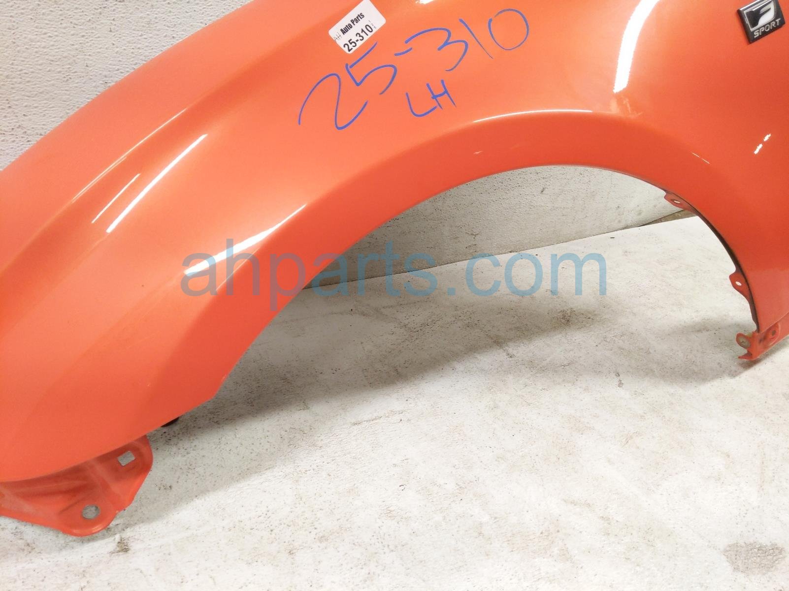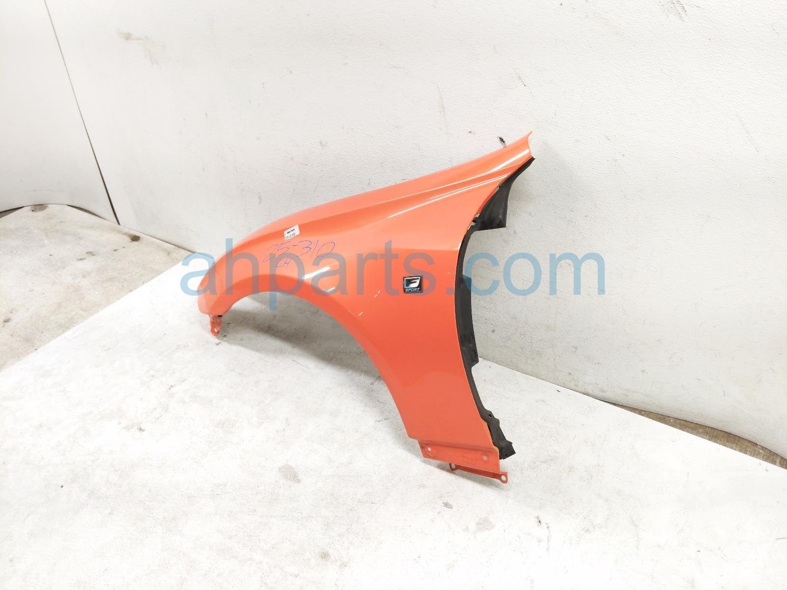 2016 Lexus RC200T front driver fender - orange is a used item with a 1 year warranty. This OEM replacement front driver fender - orange is genuine and has part numbers 53812-24230, and 5381224230. This Lexus part is for sale (please call for pricing). This item has the following note: 'This item has small paint chip and some small scratches.'