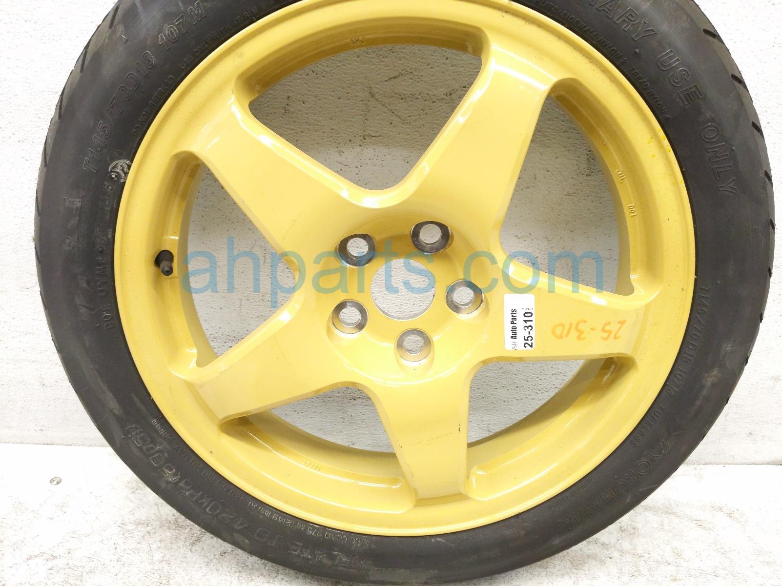 2016 Lexus RC200T rim t145/70d18 spare donut wheel + tire is a used item with a 1 year warranty. This OEM replacement rim t145/70d18 spare donut wheel + tire is genuine and has part numbers 42611-30F41, and 4261130F41. This Lexus part sells for $149.