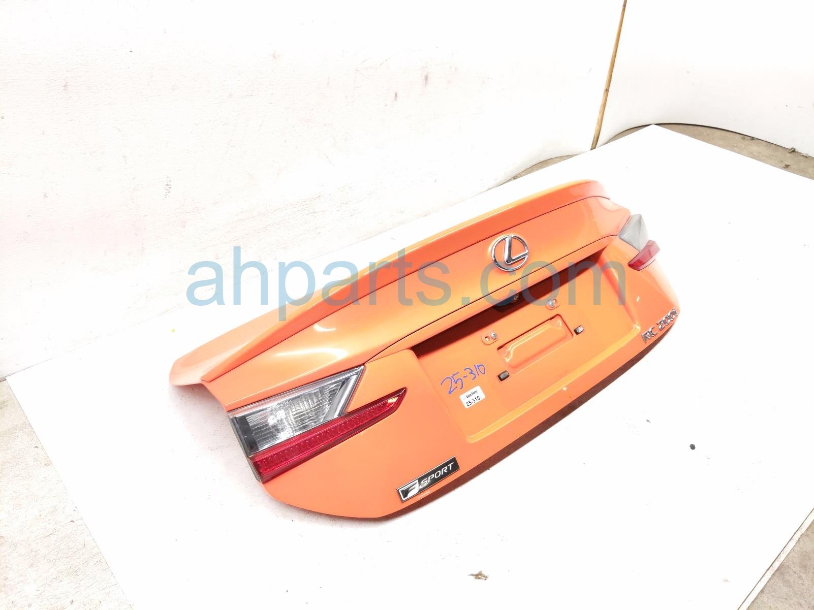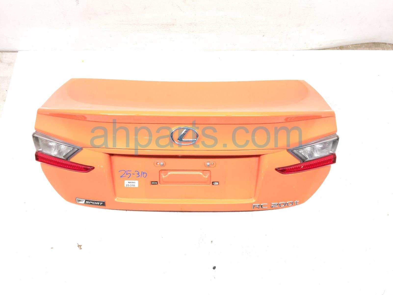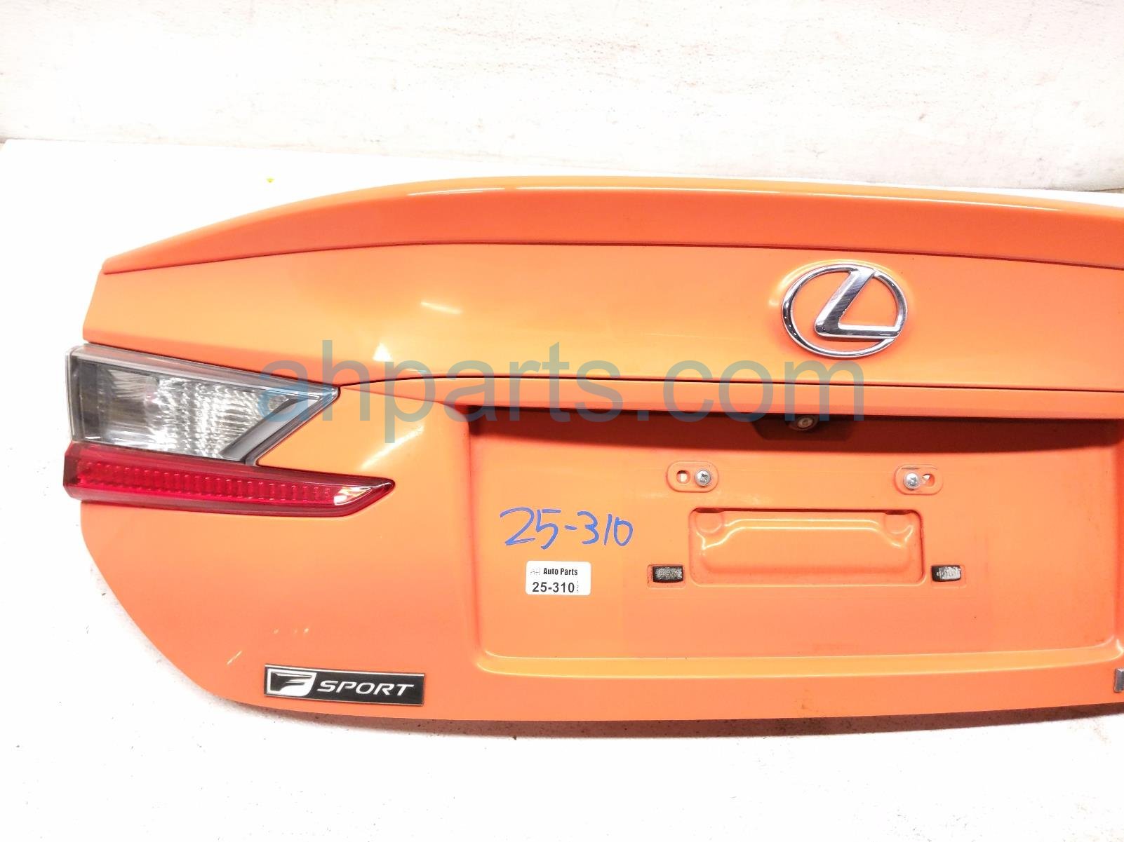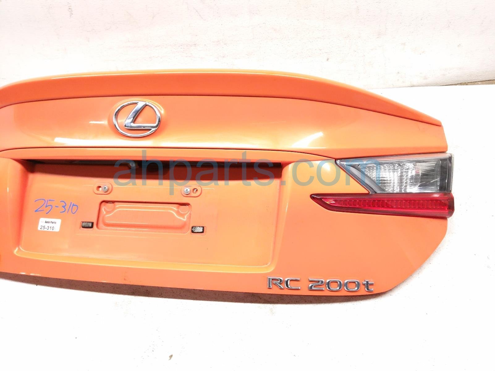 2016 Lexus RC200T trunk / decklid - orange is a used item with a 1 year warranty. This OEM replacement trunk / decklid - orange is genuine and has part numbers 64401-24250, 6440124250, 76801-24050-E0, 7680124050E0, 81581-24090, 8158124090, 81591-24090, and 8159124090. This Lexus part sells for $999.