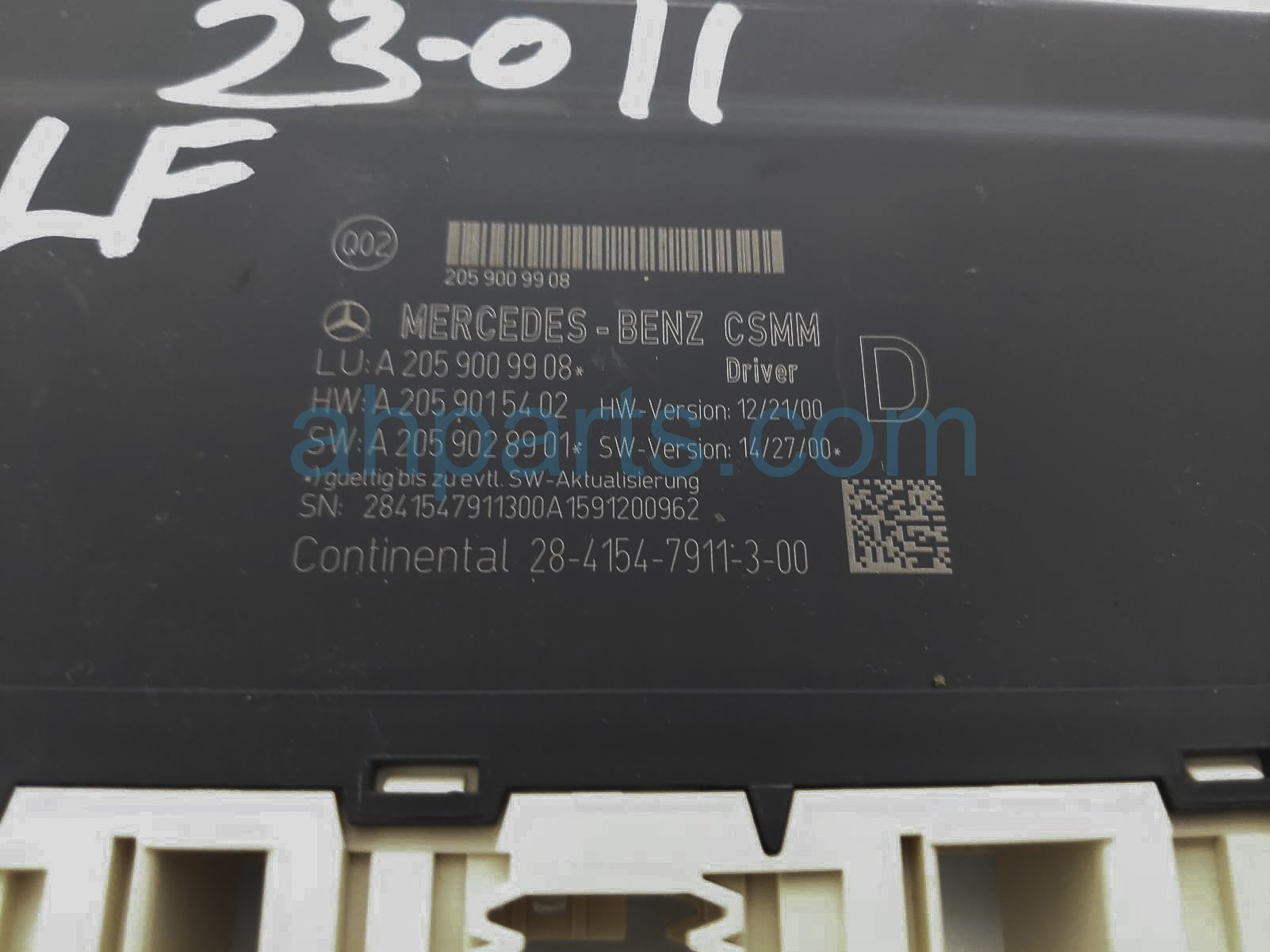 2016 Mercedes C300 driver seat control module unit is a used item with a 1 year warranty. This OEM replacement driver seat control module unit is genuine and has part numbers 205-900-51-22, 2059005122, 205-900-99-08, and 2059009908. This Mercedes part sells for $70.