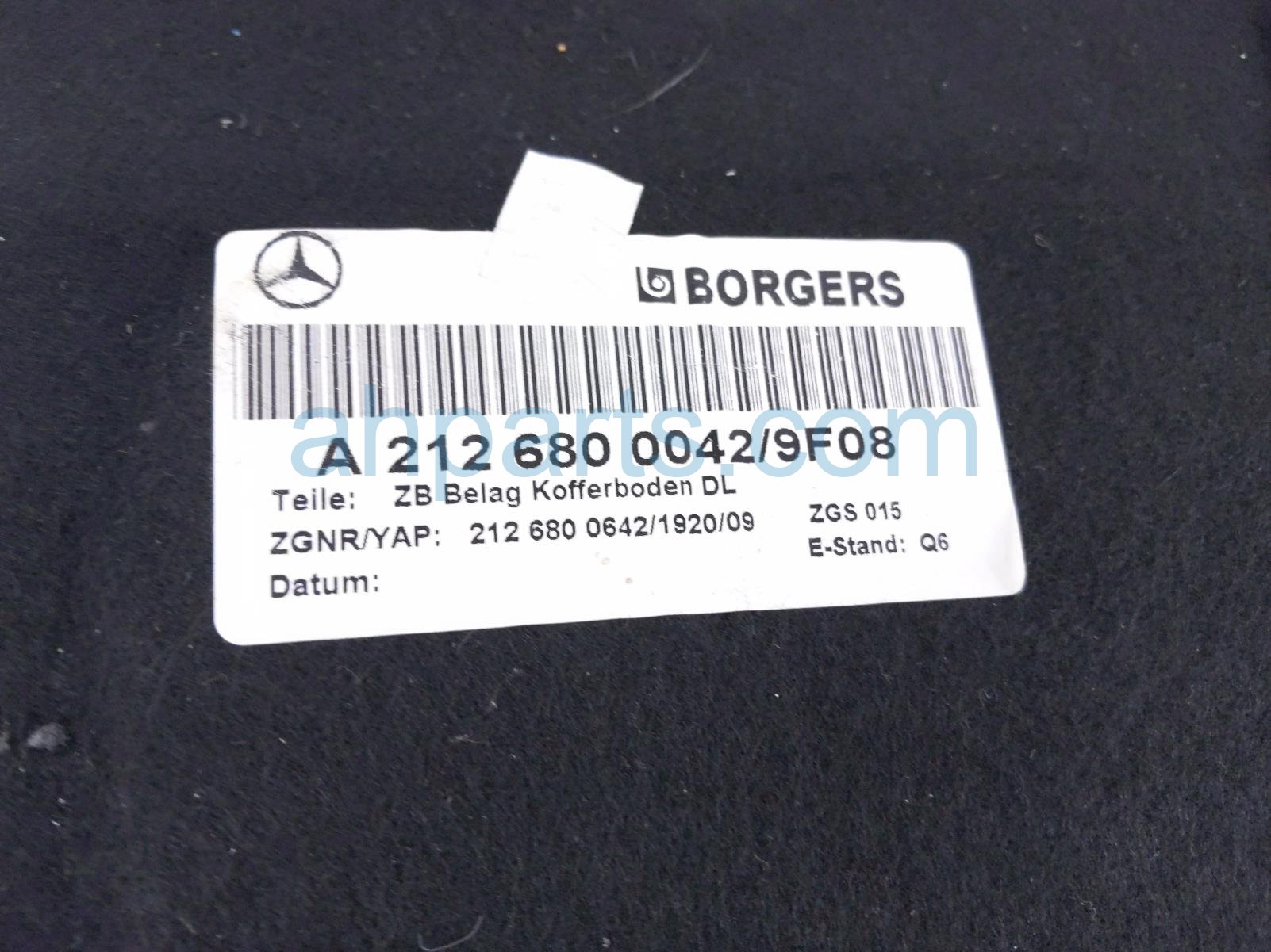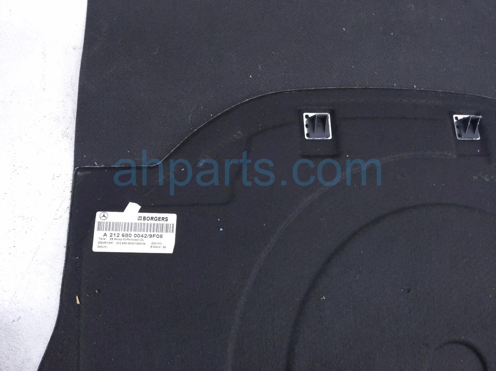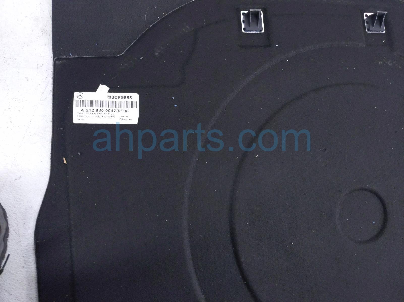 2016 Mercedes E350 cargo room floor board lid - black is a used item with a 1 year warranty. This OEM replacement cargo room floor board lid - black is genuine and has part numbers 212-680-00-42-9F08, and 21268000429F08. This Mercedes part sells for $99.