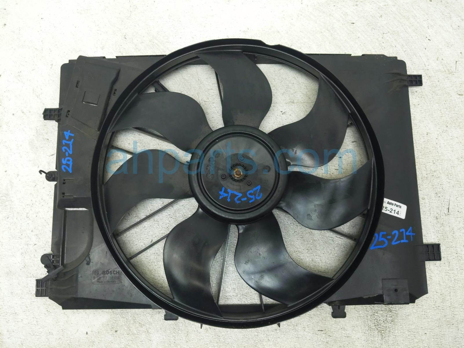 2016 Mercedes E350 cooling radiator fan assembly is a used item with a 1 year warranty. This OEM replacement cooling radiator fan assembly is genuine and has part numbers 204-906-68-02, and 2049066802. This Mercedes part sells for $99.