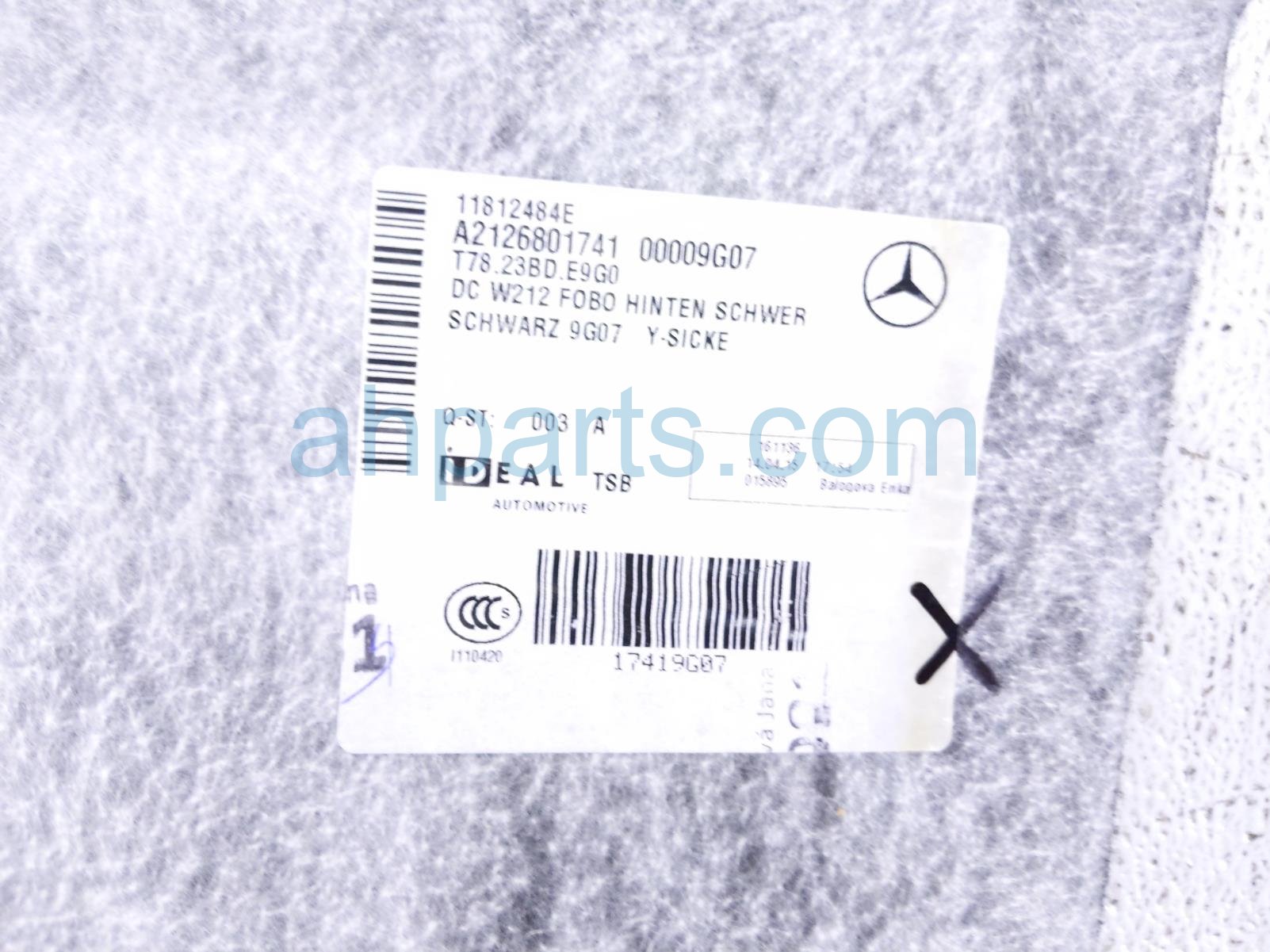 2016 Mercedes E350 ground rear floor carpet - black is a used item with a 1 year warranty. This OEM replacement ground rear floor carpet - black is genuine and has part numbers 212-680-17-41-9G07, and 21268017419G07. This Mercedes part sells for $195.