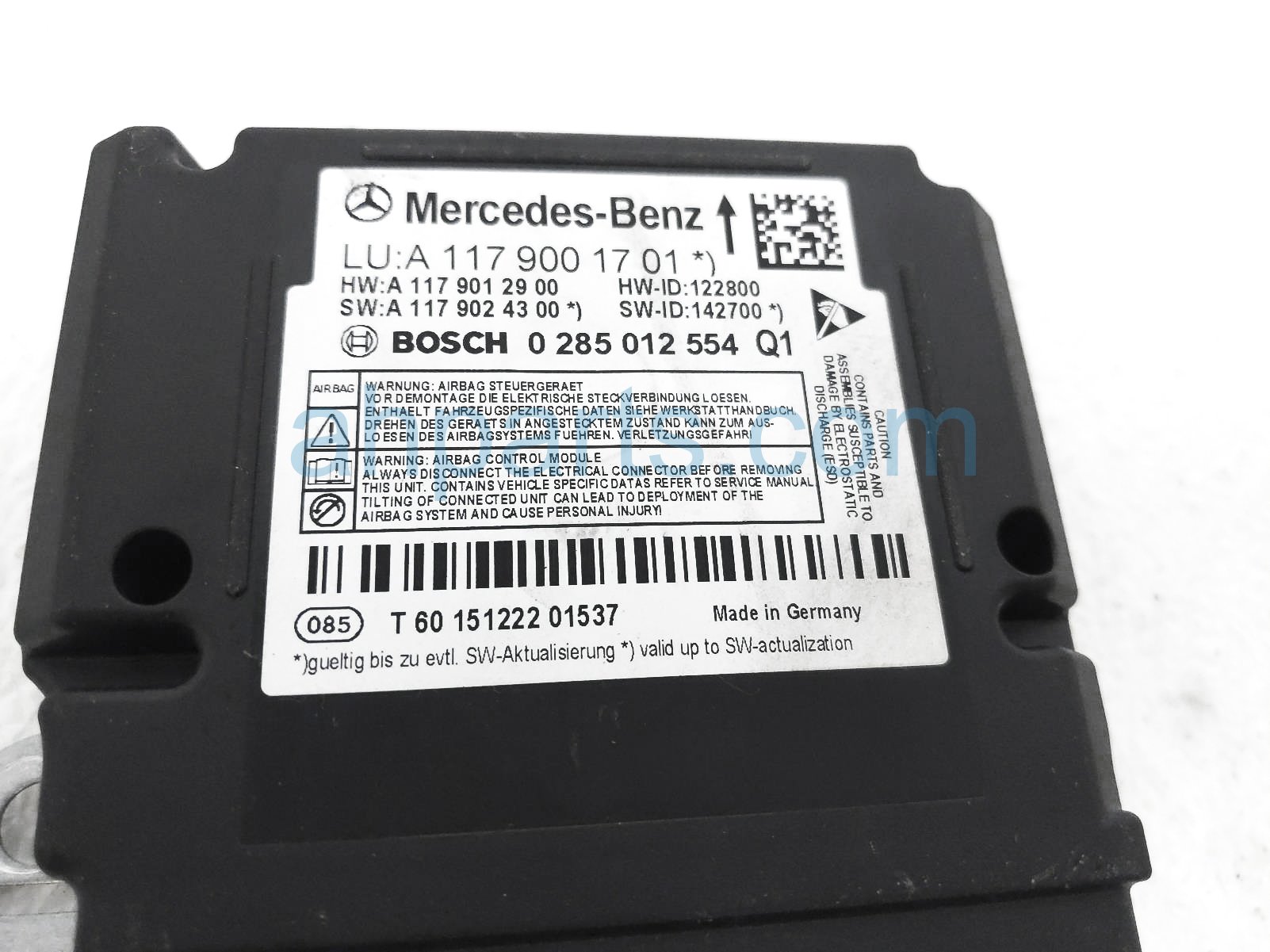 2016 Mercedes GLA250 airbag computer module - 0 blown a/b is a used item with a 1 year warranty. This OEM replacement airbag computer module - 0 blown a/b is genuine and has part numbers 117-900-17-01, and 1179001701. This Mercedes part sells for $149.