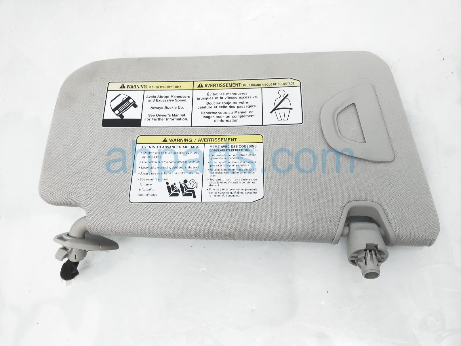 2016 Nissan Rogue driver side sun visor - grey is a used item with a 1 year warranty. This OEM replacement driver side sun visor - grey is genuine and has part numbers 96401-4BA1D, and 964014BA1D. This Nissan part sells for $65.