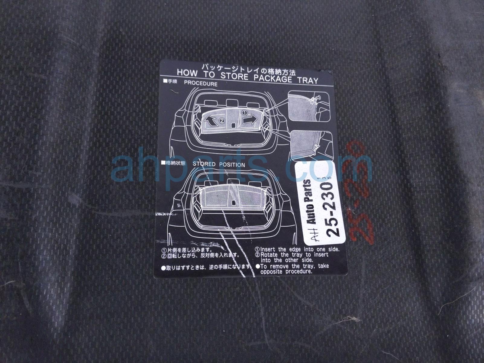 2016 Scion IM Scion rear cargo package tray - black * is a used item with a 1 year warranty. This OEM replacement rear cargo package tray - black * is genuine and has part numbers 64330-12A20-C0, and 6433012A20C0. This Scion part sells for $149. This item has the following note: 'Minor scratches.'
