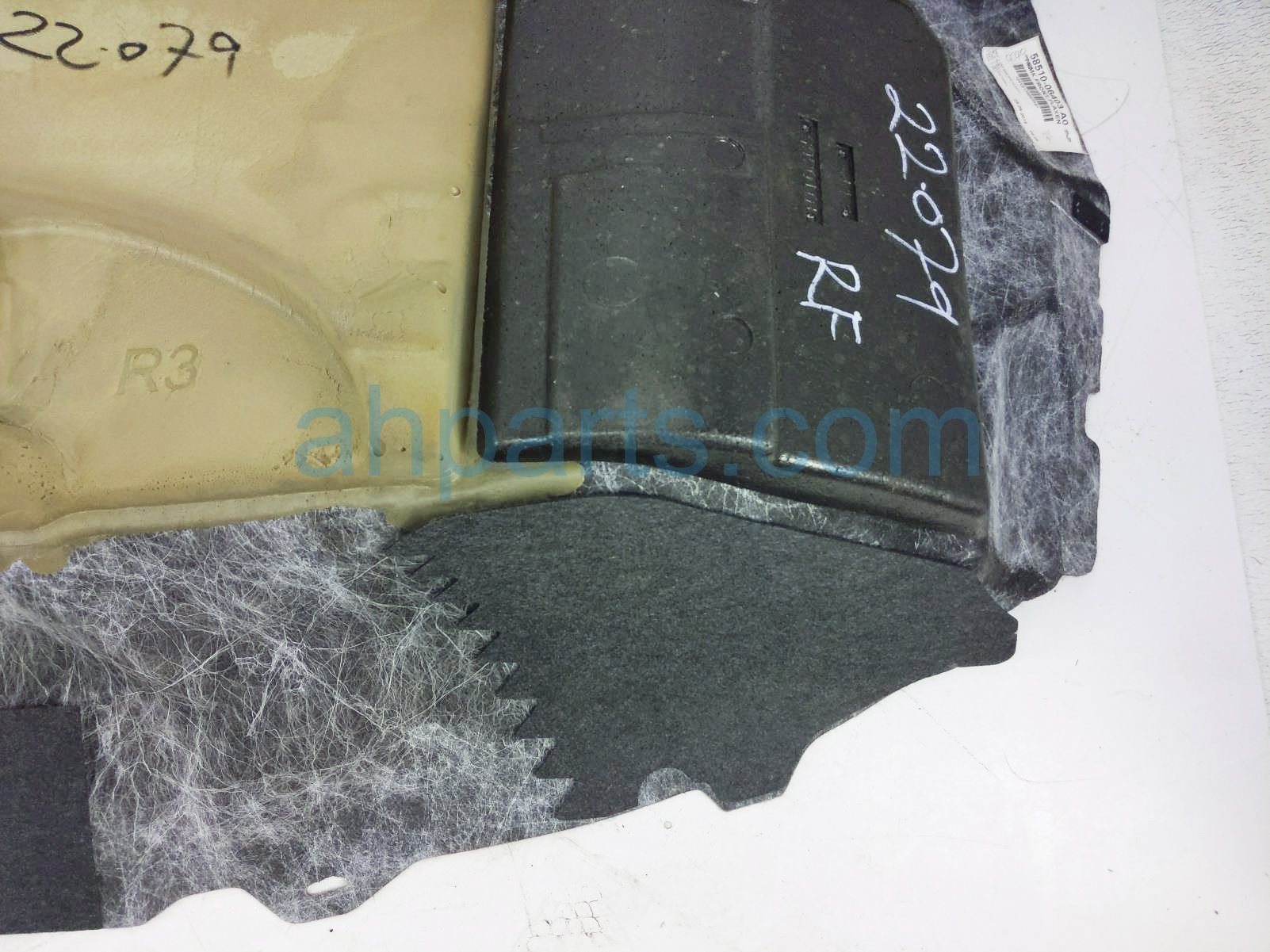 2016 Toyota Camry front ground front passenger floor carpet - tan is a used item with a 1 year warranty. This OEM replacement front ground front passenger floor carpet - tan is genuine and has part numbers 58510-06403-A0, and 5851006403A0. This Toyota part sells for $40.