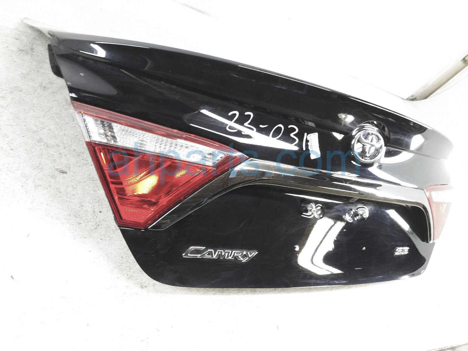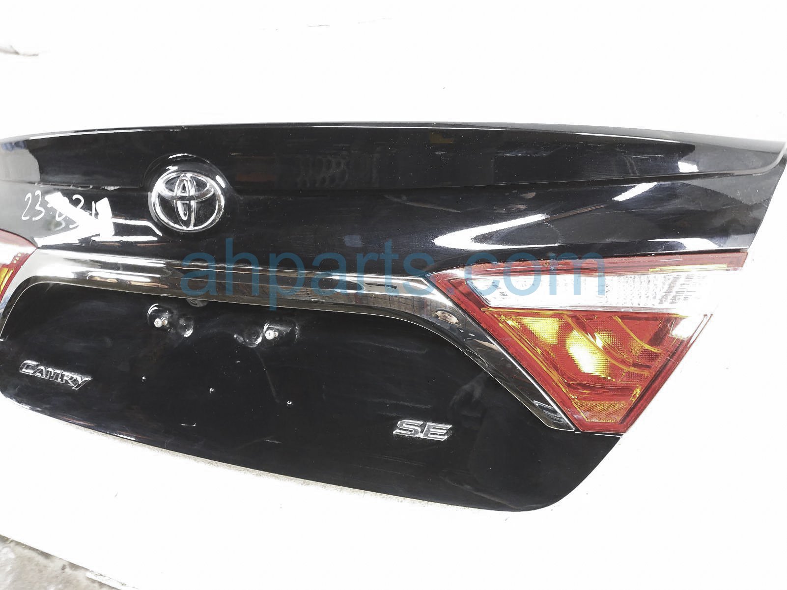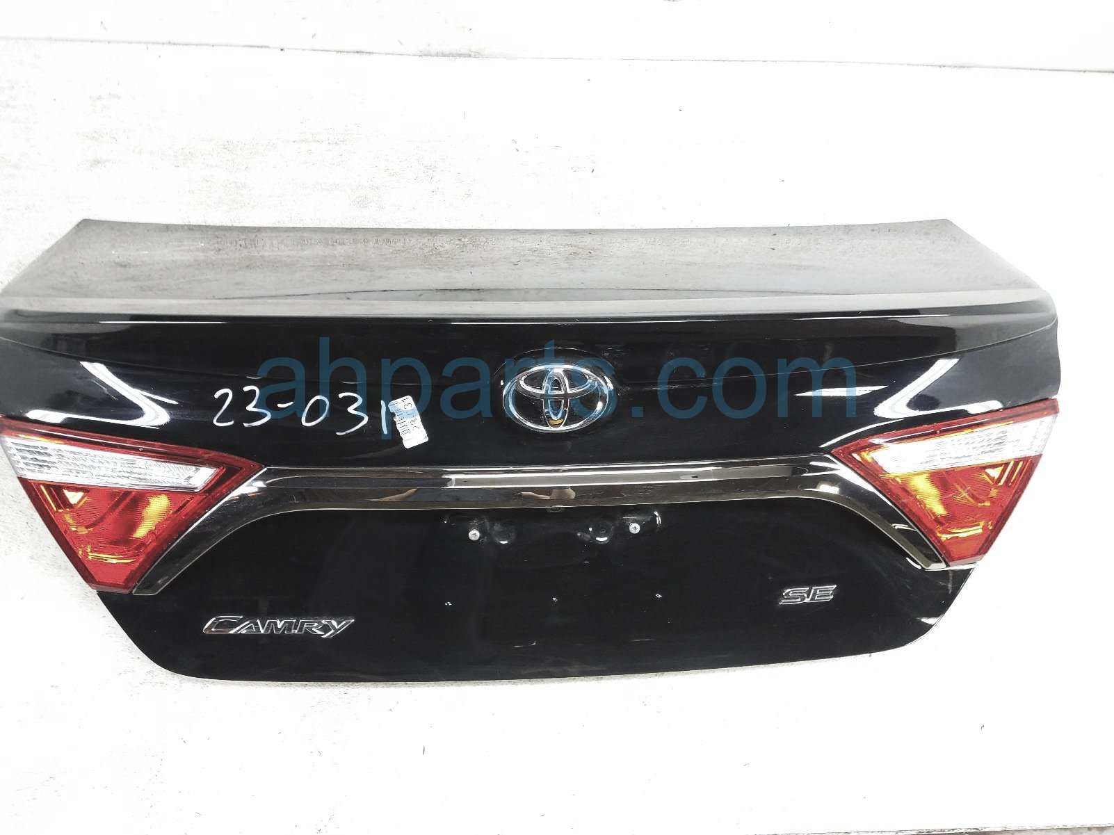 2016 Toyota Camry trunk / decklid - black - is a used item with a 1 year warranty. This OEM replacement trunk / decklid - black - is genuine and has part numbers 64401-06A50, 6440106A50, 81580-06410, 8158006410, 81590-06410, and 8159006410. This Toyota part sells for $499. This item has the following note: 'There is a small deep scratch on the top of the decklid.'