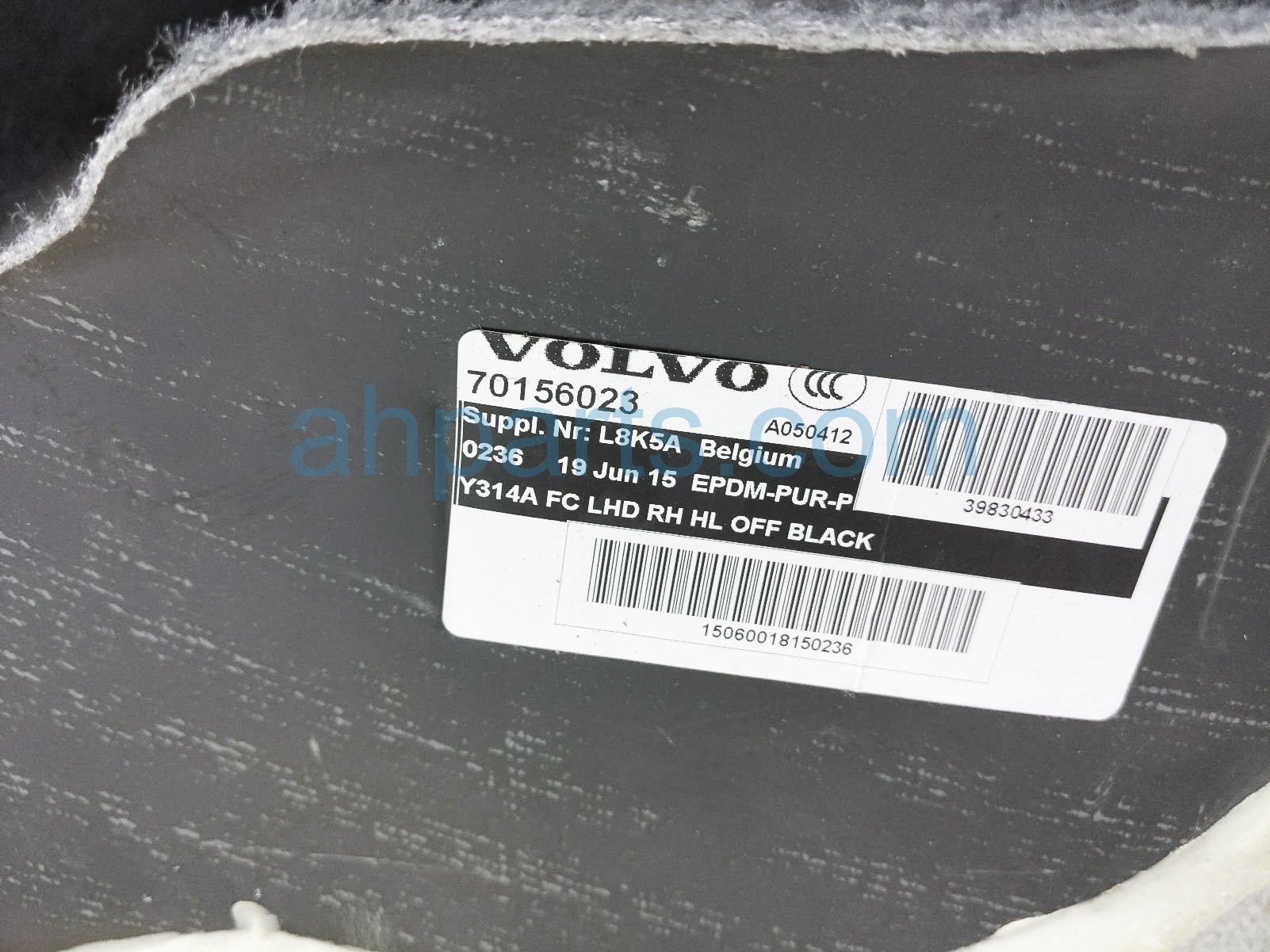 2016 Volvo XC60 front ground front passenger floor carpet assy - black is a used item with a 1 year warranty. This OEM replacement front ground front passenger floor carpet assy - black is genuine and has part numbers 39830433. This Volvo part sells for $85.