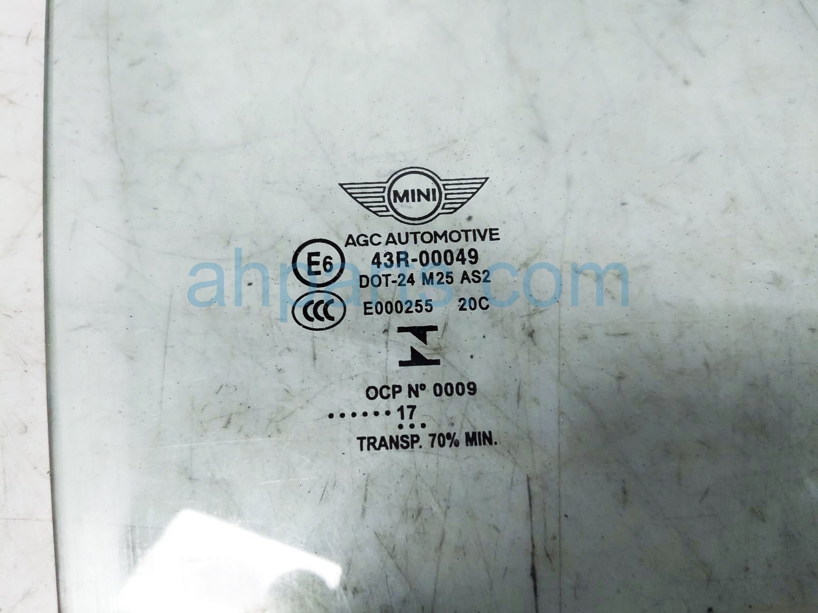 2017 BMW Mini Cooper front / passenger door window glass is a used item with a 1 year warranty. This OEM replacement front / passenger door window glass is genuine and has part numbers 51-33-7-296-448, and 51337296448. This BMW part sells for $100.