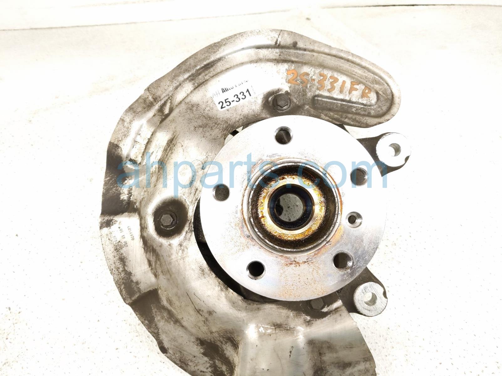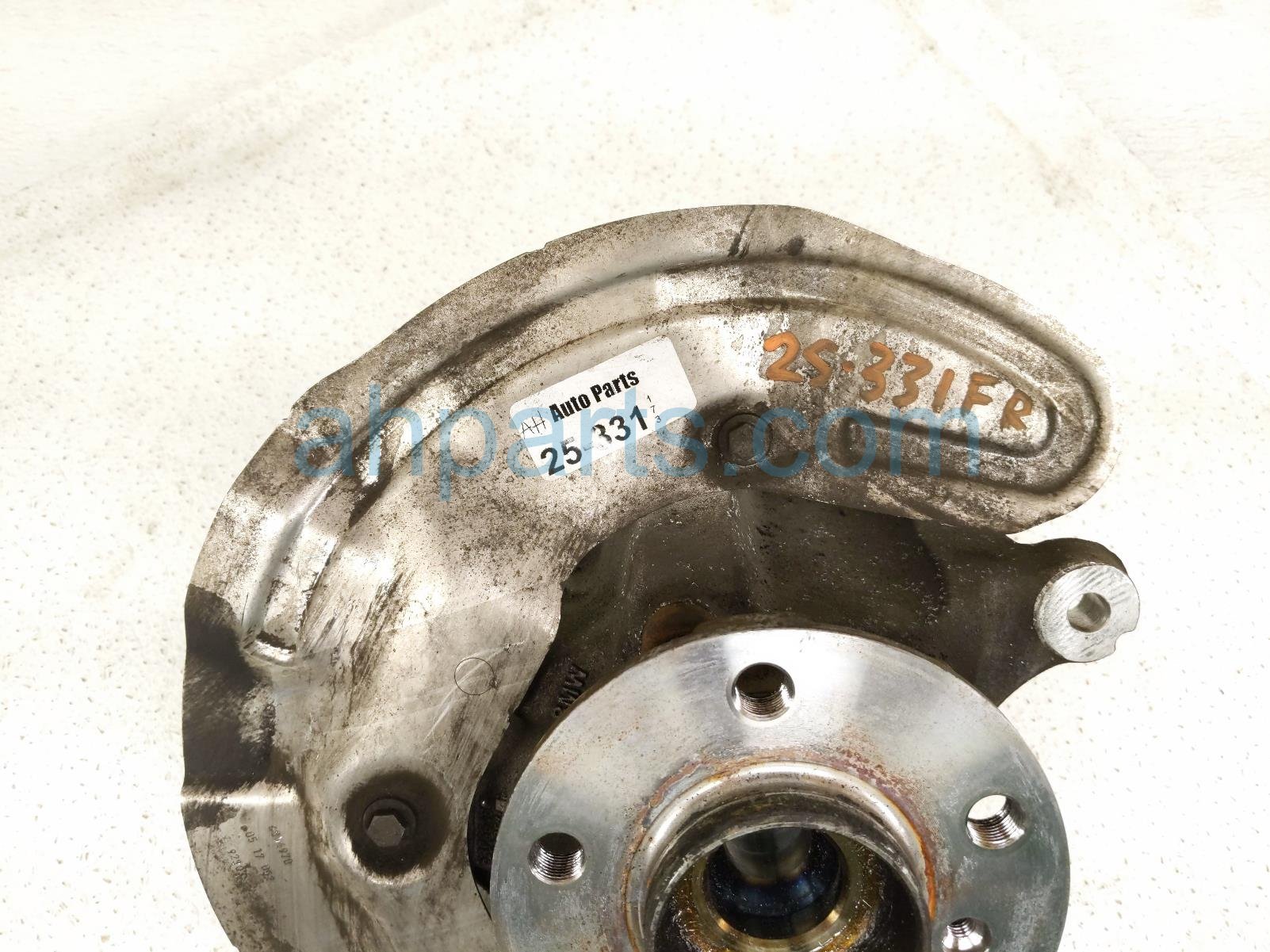 2017 BMW Minicooper Countryman front passenger spindle knuckle hub is a used item with a 1 year warranty. This OEM replacement front passenger spindle knuckle hub is genuine and has part numbers 31-21-6-876-646, 31216876646, 31-20-8-845-775, 31208845775, 34-10-6-854-970, and 34106854970. This BMW part sells for $115.