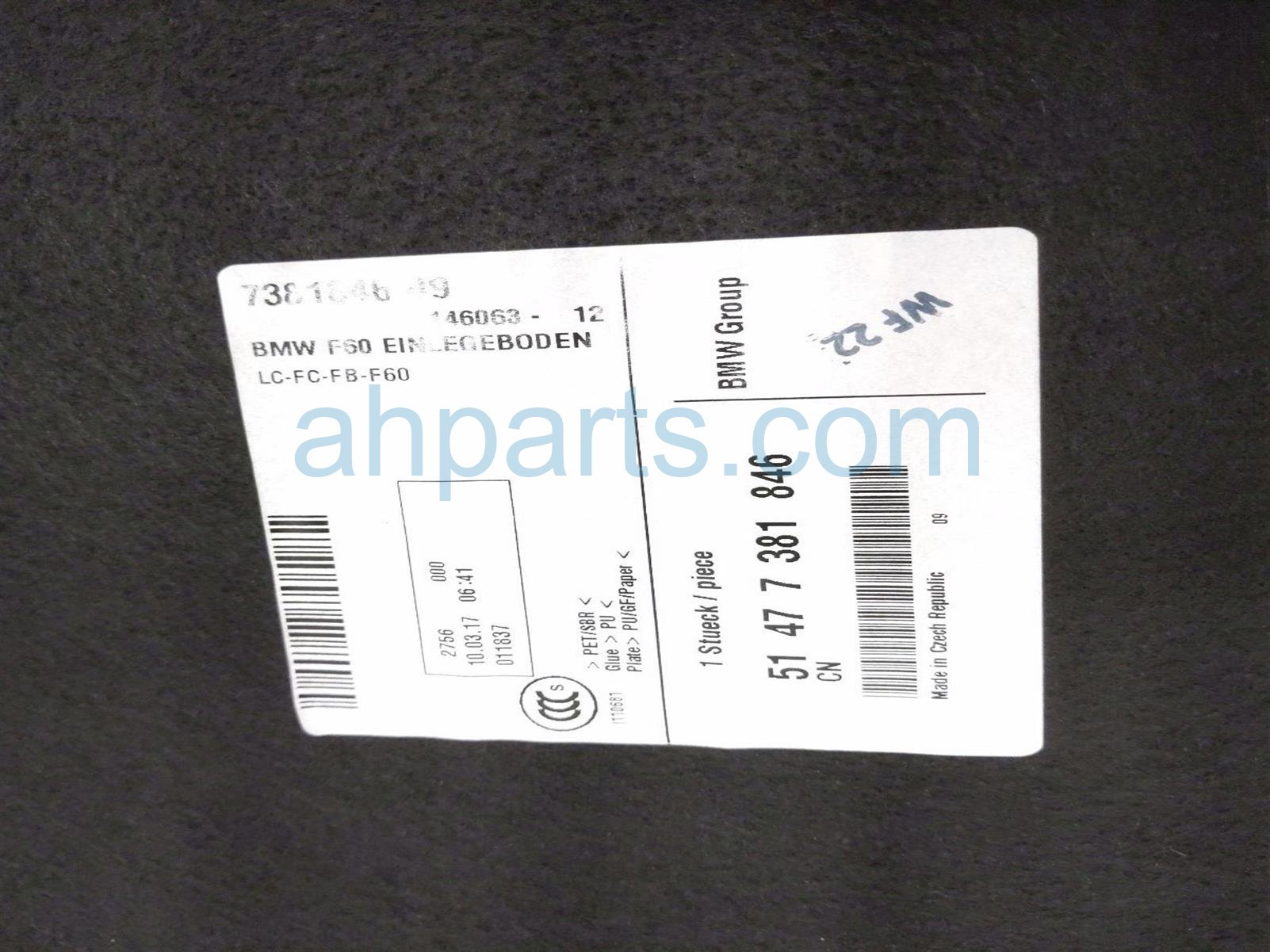 2017 BMW Minicooper Countryman rear cargo floor liner panel - blk is a used item with a 1 year warranty. This OEM replacement rear cargo floor liner panel - blk is genuine and has part numbers 51-47-7-381-846, and 51477381846. This BMW part is for sale (please call for pricing).