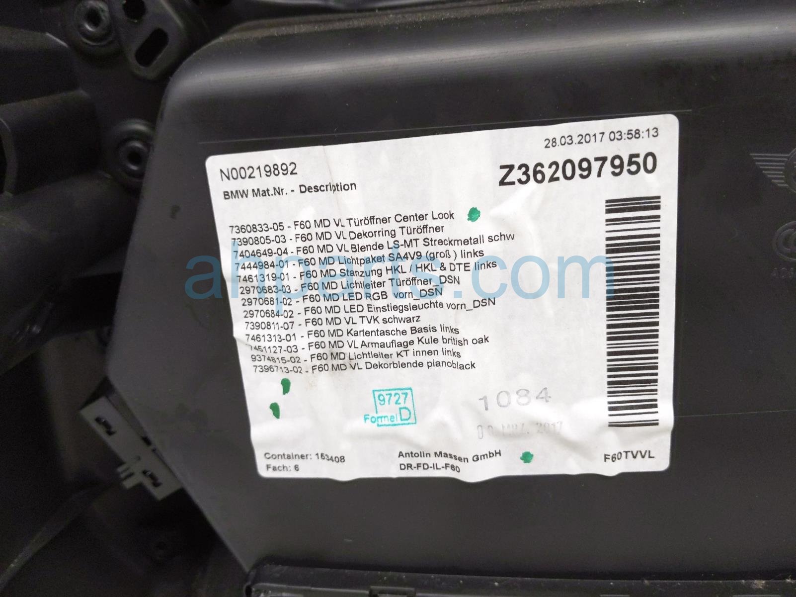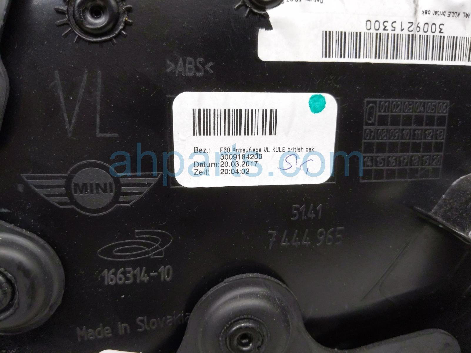 2017 BMW Minicooper Countryman front trim liner front driver interior door panel - oak is a used item with a 1 year warranty. This OEM replacement front trim liner front driver interior door panel - oak is genuine and has part numbers 51-41-7-476-519, 51417476519, 51-41-7-396-713, and 51417396713. This BMW part is for sale (please call for pricing).