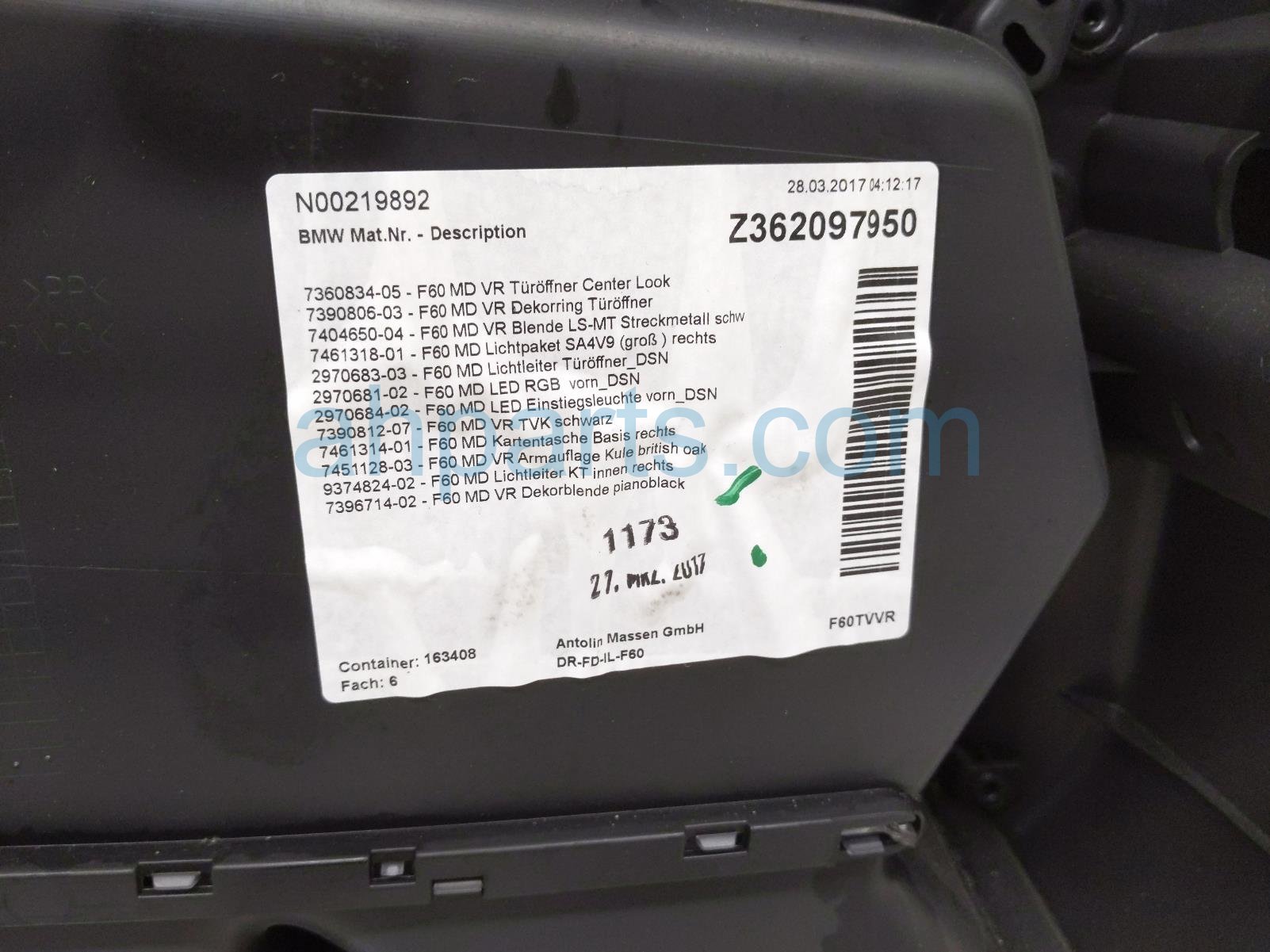 2017 BMW Minicooper Countryman front trim liner front passenger interior door panel - oak is a used item with a 1 year warranty. This OEM replacement front trim liner front passenger interior door panel - oak is genuine and has part numbers 51-41-7-476-520, 51417476520, 51-41-7-396-714, and 51417396714. This BMW part is for sale (please call for pricing).