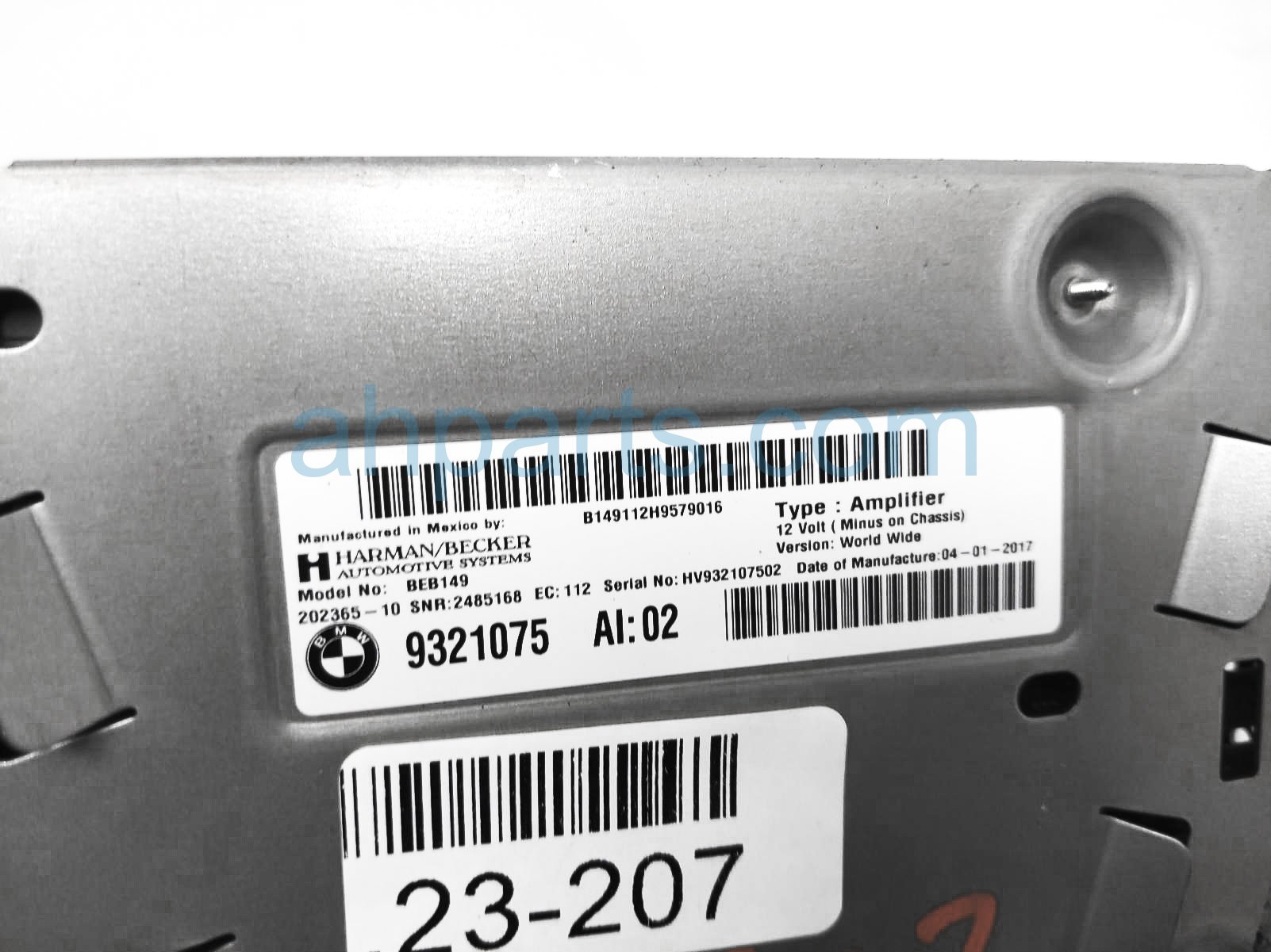 2017 BMW X5 audio amplier unit - harmon becker is a used item with a 1 year warranty. This OEM replacement audio amplier unit - harmon becker is genuine and has part numbers 65-12-9-321-075, and 65129321075. This BMW part sells for $175.