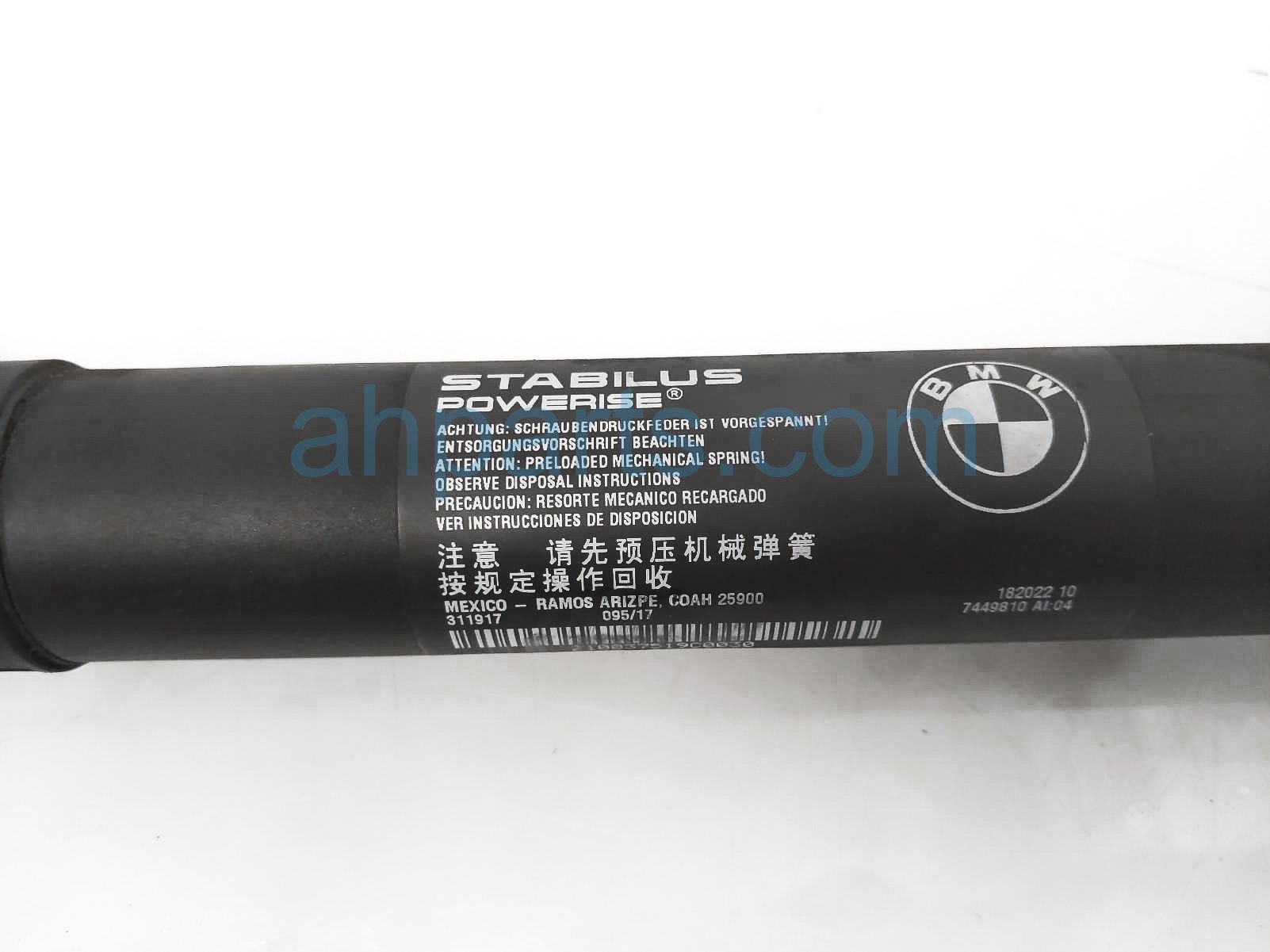 2017 BMW X5 passenger power liftgate lift cylinder is a used item with a 1 year warranty. This OEM replacement passenger power liftgate lift cylinder is genuine and has part numbers 51-24-7-294-470, and 51247294470. This BMW part sells for $195.