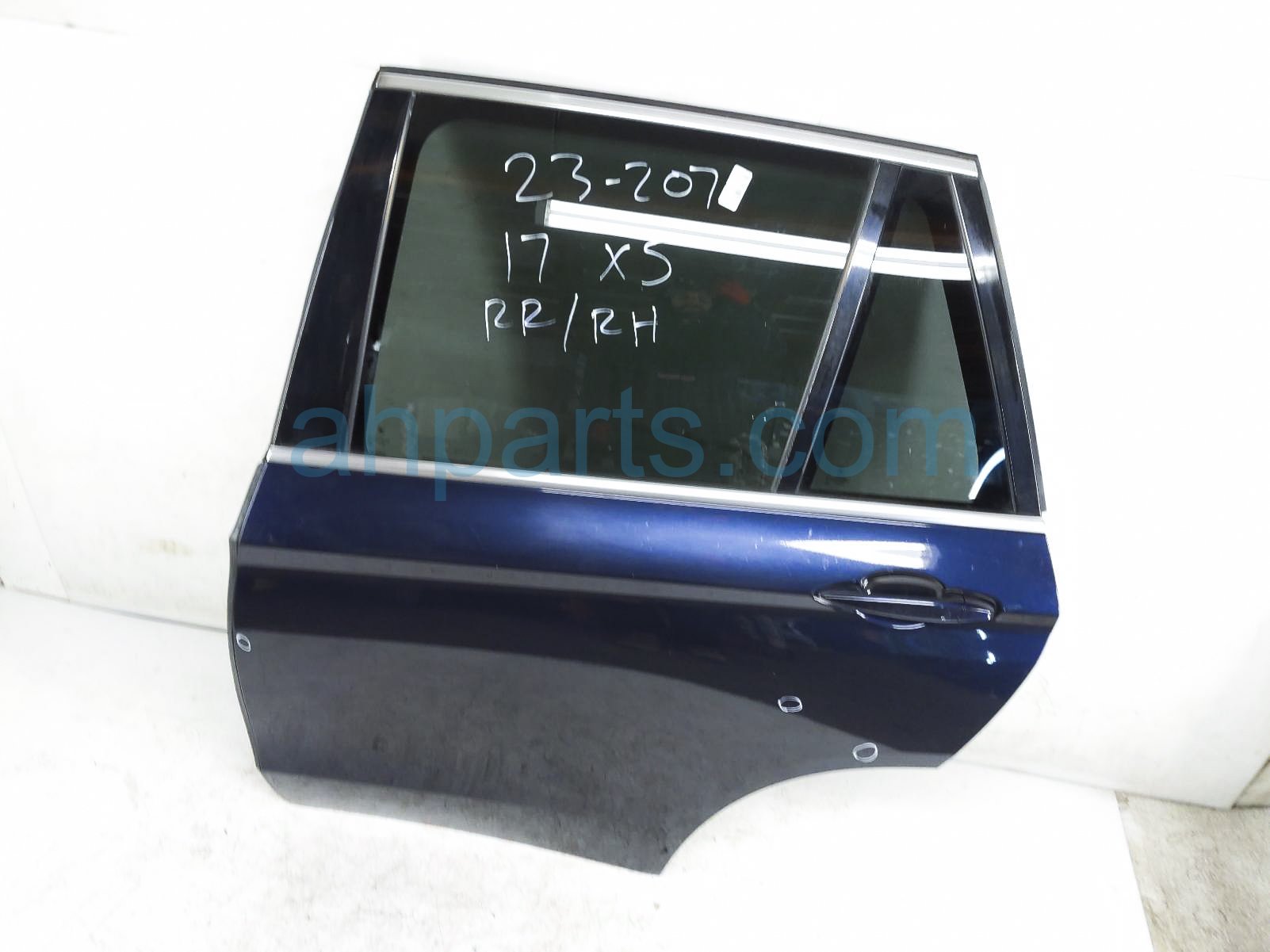 2017 BMW X5 rear driver door - blue - no inside trim* is a used item with a 1 year warranty. This OEM replacement rear driver door - blue - no inside trim* is genuine and has part numbers 41-51-7-386-740, and 41517386740. This BMW part sells for $650. This item has the following note: 'This item has a few dings and a few scuffs on the paint.'