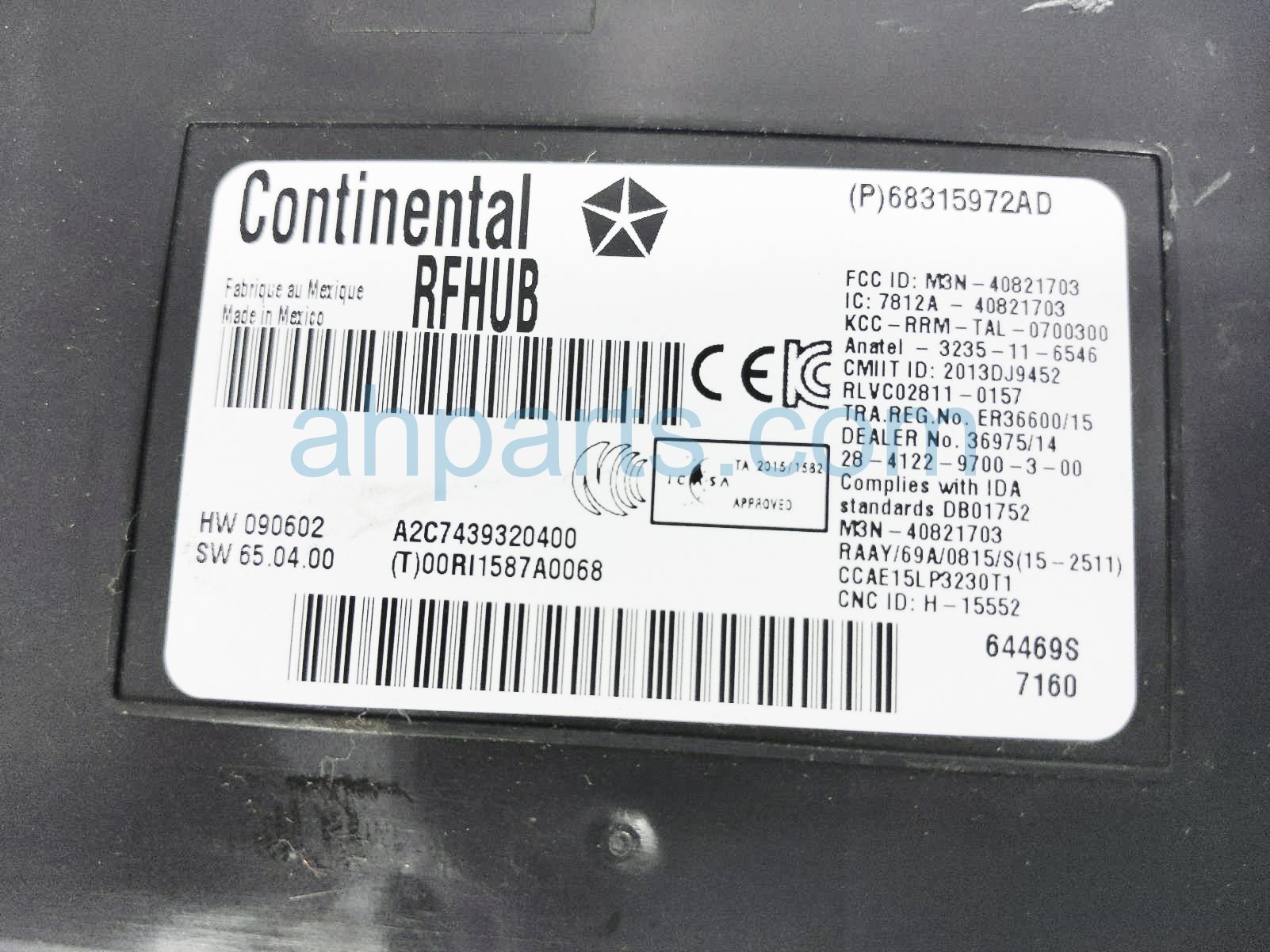 2017 Chrysler 300 hub receiver control unit is a used item with a 1 year warranty. This OEM replacement hub receiver control unit is genuine and has part numbers 68315972AD. This Chrysler part sells for $35.