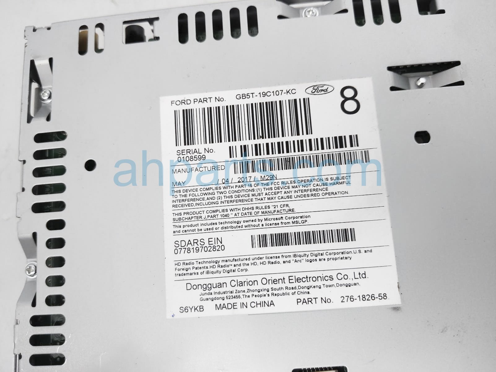 2017 Ford Explorer audio receiver unit is a used item with a 1 year warranty. This OEM replacement audio receiver unit is genuine and has part numbers gb5t-19c107-kc, and gb5t19c107kc. This Ford part sells for $120.