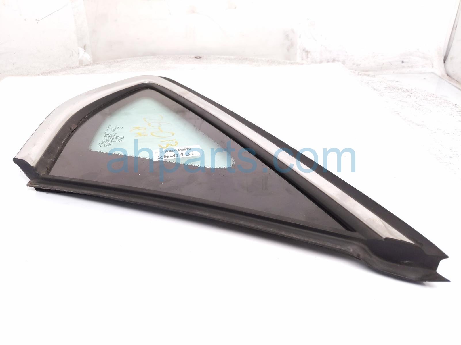 2017 Ford Fusion passenger quarter window glass is a used item with a 1 year warranty. This OEM replacement passenger quarter window glass is genuine and has part numbers DS7Z-5429710-B, and DS7Z5429710B. This Ford part is for sale (please call for pricing).