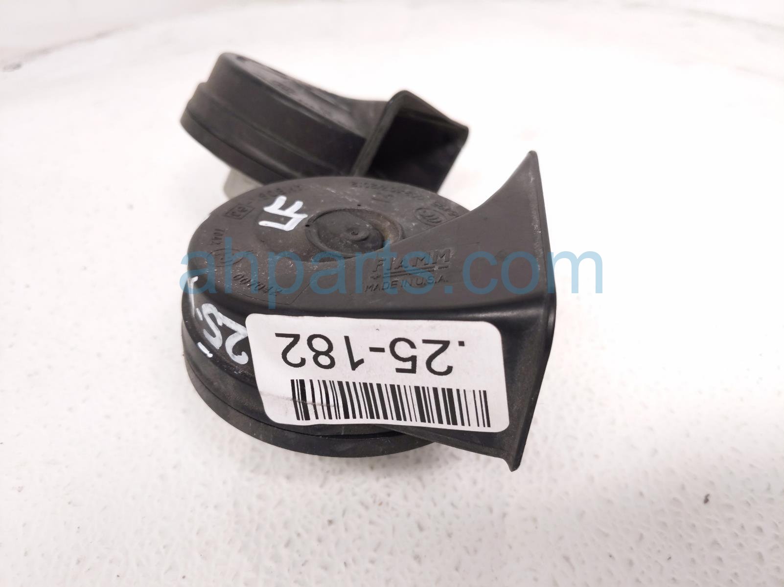 2017 Ford Mustang high & low pitch horn * is a used item with a 1 year warranty. This OEM replacement high & low pitch horn * is genuine and has part numbers FR3Z-13832-G, and FR3Z13832G. This Ford part sells for $31. This item has the following note: 'One horn has a crack - grade b.'
