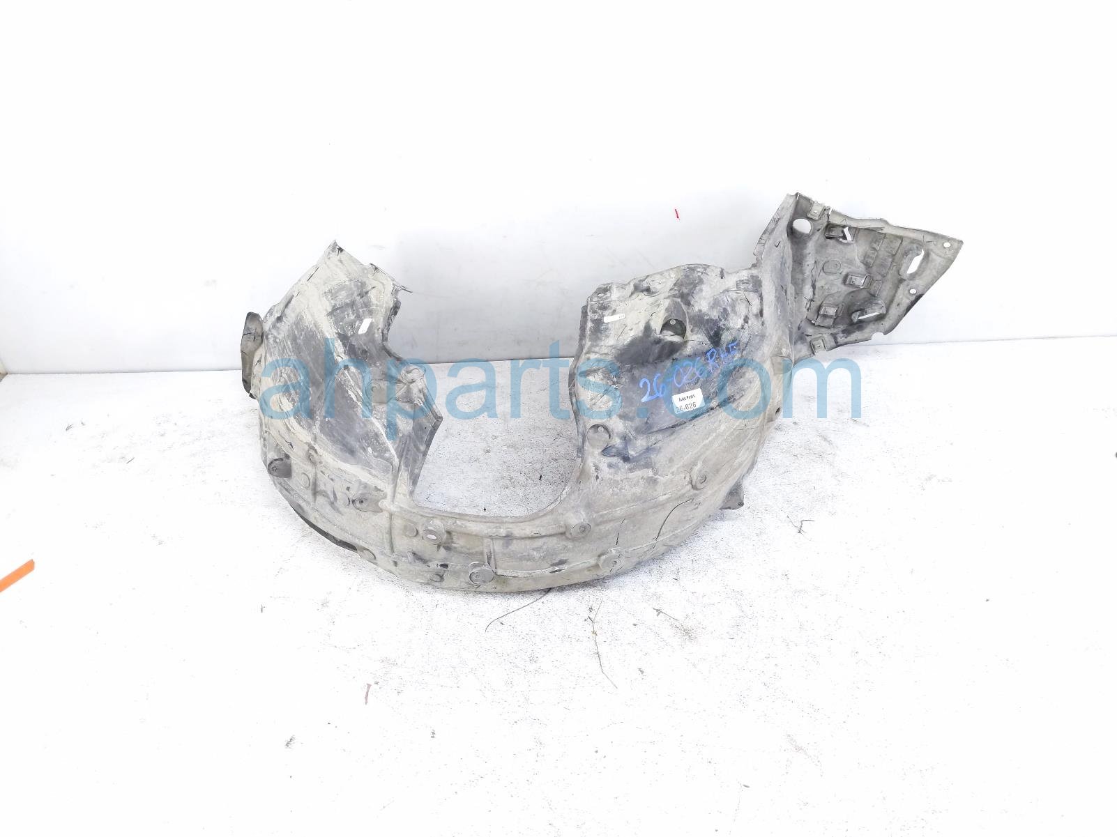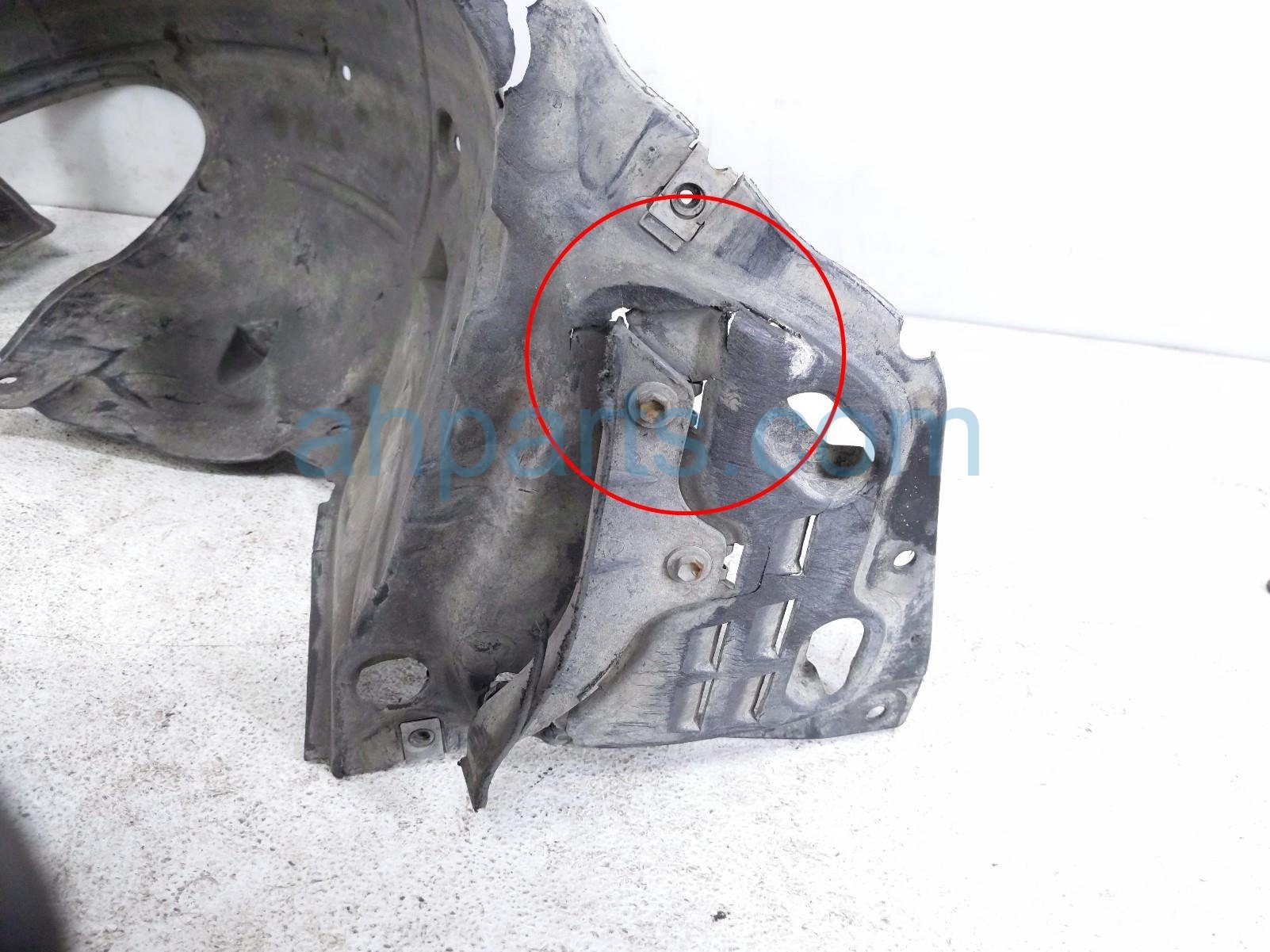 2017 Honda Civic front passenger inner fender liner is a used item with a 1 year warranty. This OEM replacement front passenger inner fender liner is genuine and has part numbers 74101-TBA-A00, and 74101TBAA00. This Honda part is for sale (please call for pricing). This item has the following note: 'Item has some ripped tabs.'