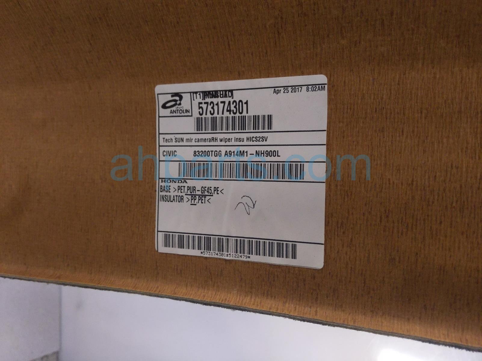 2017 Honda Civic headliner w/ sunroof - black htbk is a used item with a 1 year warranty. This OEM replacement headliner w/ sunroof - black htbk is genuine and has part numbers 83200-TGG-A91ZA, and 83200TGGA91ZA. This Honda part is for sale (please call for pricing).