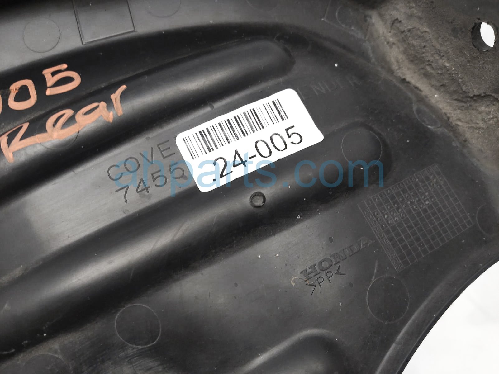 2017 Honda FIT rear passenger fender side inner cover is a used item with a 1 year warranty. This OEM replacement rear passenger fender side inner cover is genuine and has part numbers 74551-T5R-A00, and 74551T5RA00. This Honda part sells for $30.