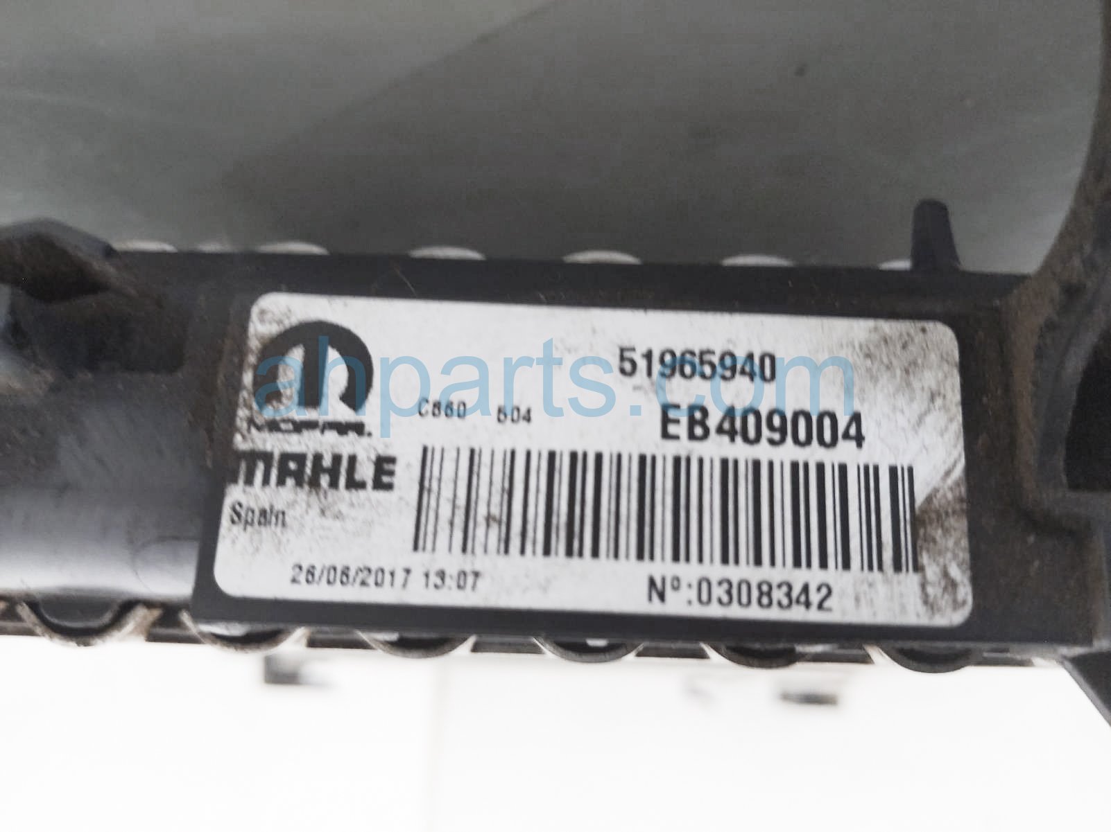2017 Jeep Renegade radiator is a used item with a 1 year warranty. This OEM replacement radiator is genuine and has part numbers 68247208AA. This Jeep part sells for $99. This item has the following note: 'Has few bent fins.'
