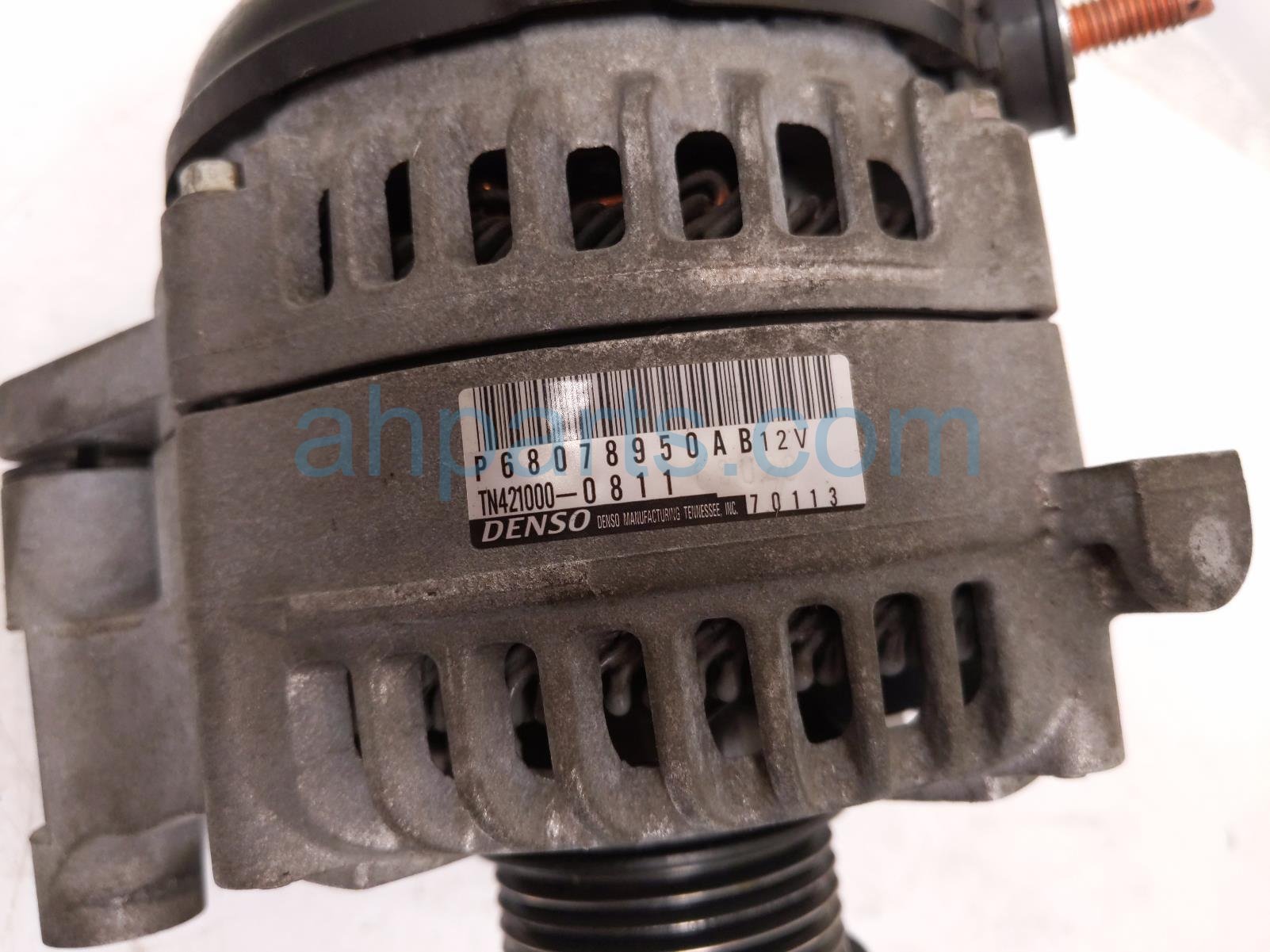 2017 Jeep Wrangler alternator / generator is a used item with a 1 year warranty. This OEM replacement alternator / generator is genuine and has part numbers 68078950AB. This Jeep part is for sale (please call for pricing).