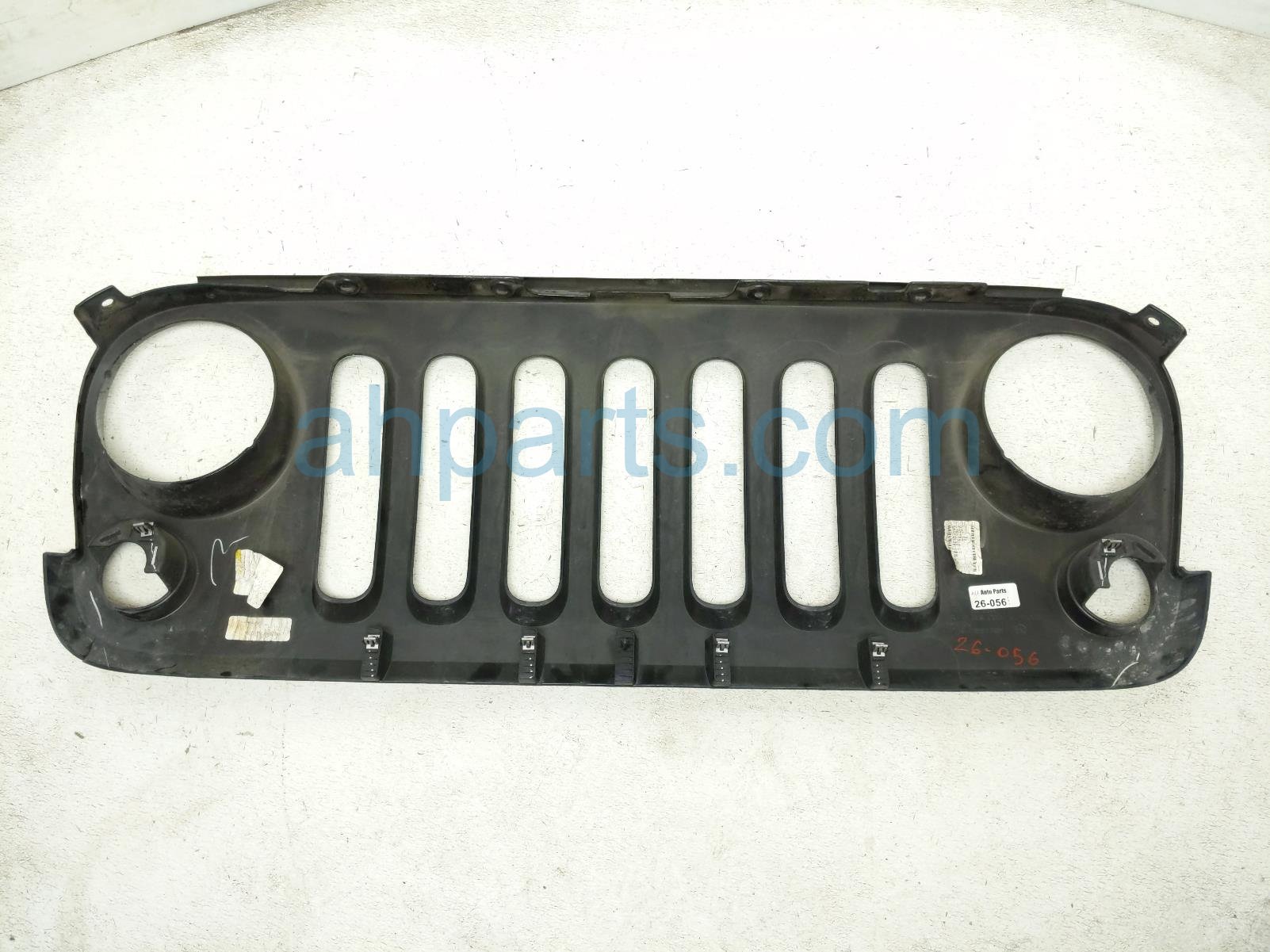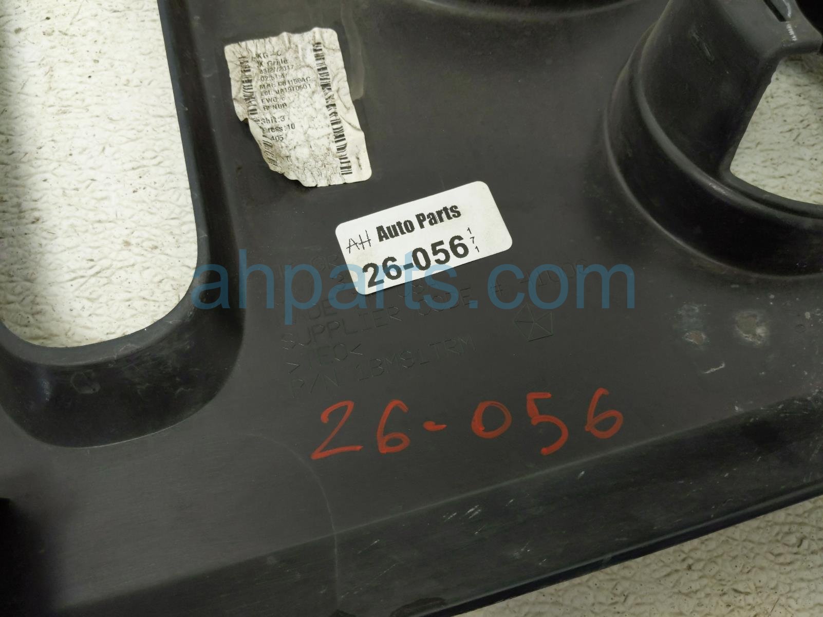 2017 Jeep Wrangler front grille - grey is a used item with a 1 year warranty. This OEM replacement front grille - grey is genuine and has part numbers 68046306AB, 681159AC, and 1BY81TRM. This Jeep part is for sale (please call for pricing). This item has the following note: 'This item has a scrape out of it.'