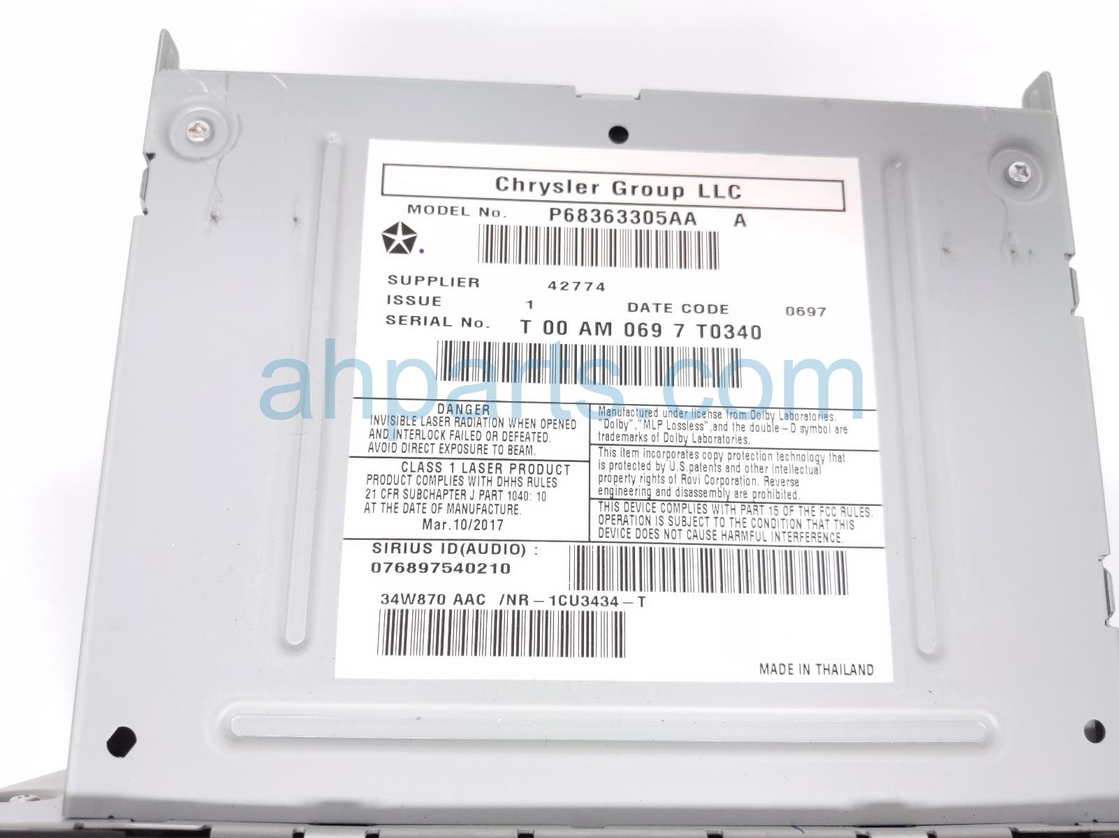 2017 Jeep Wrangler radio receiver & display screen is a used item with a 1 year warranty. This OEM replacement radio receiver & display screen is genuine and has part numbers 68368204AB. This Jeep part sells for $495.