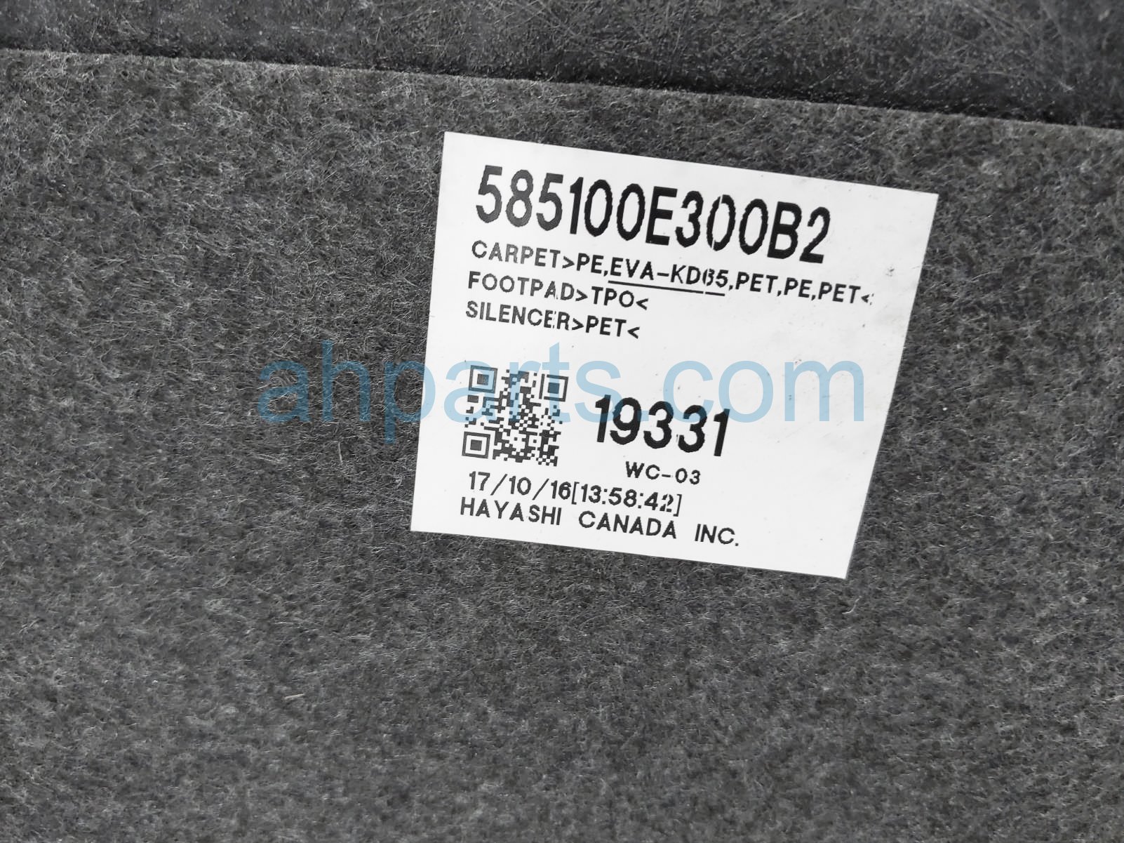 2017 Lexus RX350 front / ground floor carpet - gray is a used item with a 1 year warranty. This OEM replacement front / ground floor carpet - gray is genuine and has part numbers 58510-0E300-B2, and 585100E300B2. This Lexus part sells for $200.