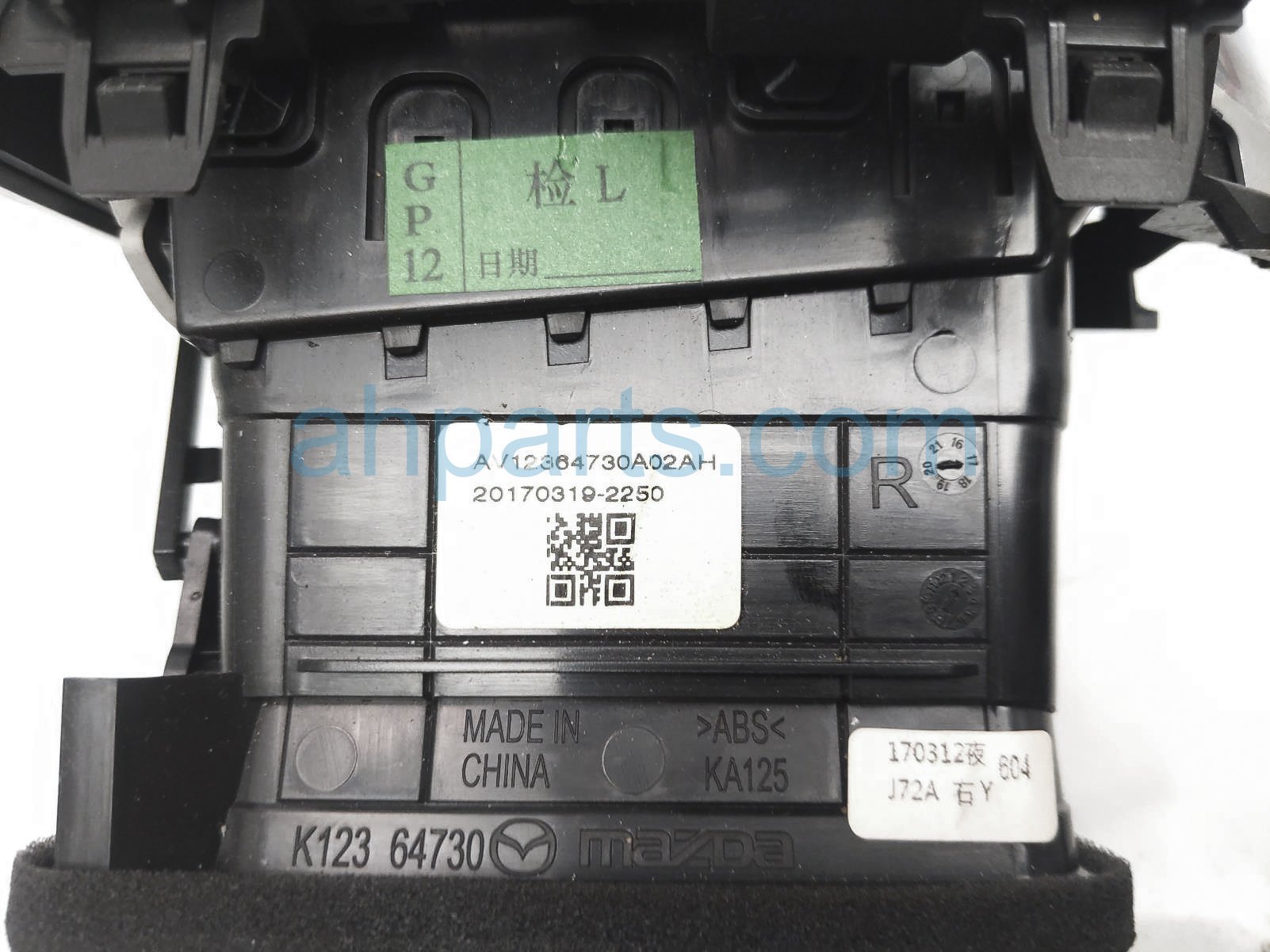 2017 Mazda CX-5 front passenger air outlet vent bezel assy is a used item with a 1 year warranty. This OEM replacement front passenger air outlet vent bezel assy is genuine and has part numbers K123-64-730C-02, and K12364730C02. This Mazda part sells for $35. This item has the following note: 'Small scratches. grade b.'