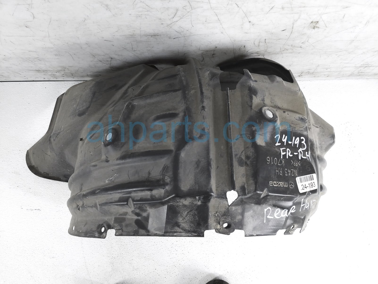 2017 Mazda MX-5 front passenger rearward inner fender liner is a used item with a 1 year warranty. This OEM replacement front passenger rearward inner fender liner is genuine and has part numbers N243-56-130A, and N24356130A. This Mazda part sells for $50.