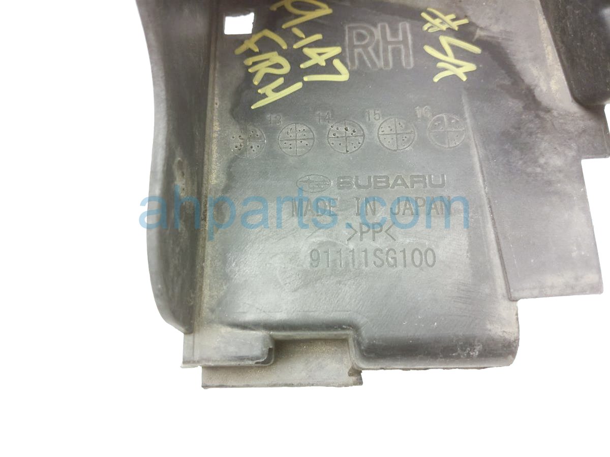 2017 Subaru Forester front mud flap front passenger fender mounted lower molding is a used item with a 1 year warranty. This OEM replacement front mud flap front passenger fender mounted lower molding is genuine and has part numbers 91112SG101. This Subaru part sells for $20.