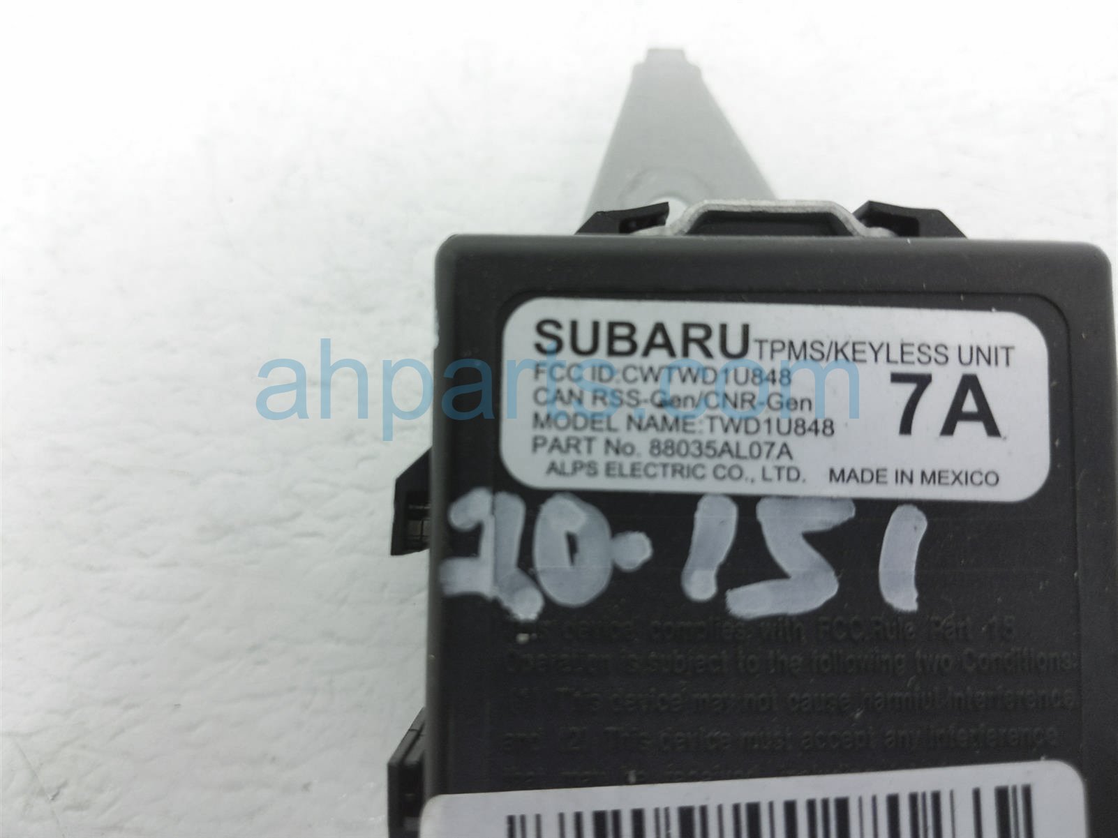 2017 Subaru Legacy tpms/keyless entry unit is a used item with a 1 year warranty. This OEM replacement tpms/keyless entry unit is genuine and has part numbers 88035AL07A. This Subaru part sells for $29.