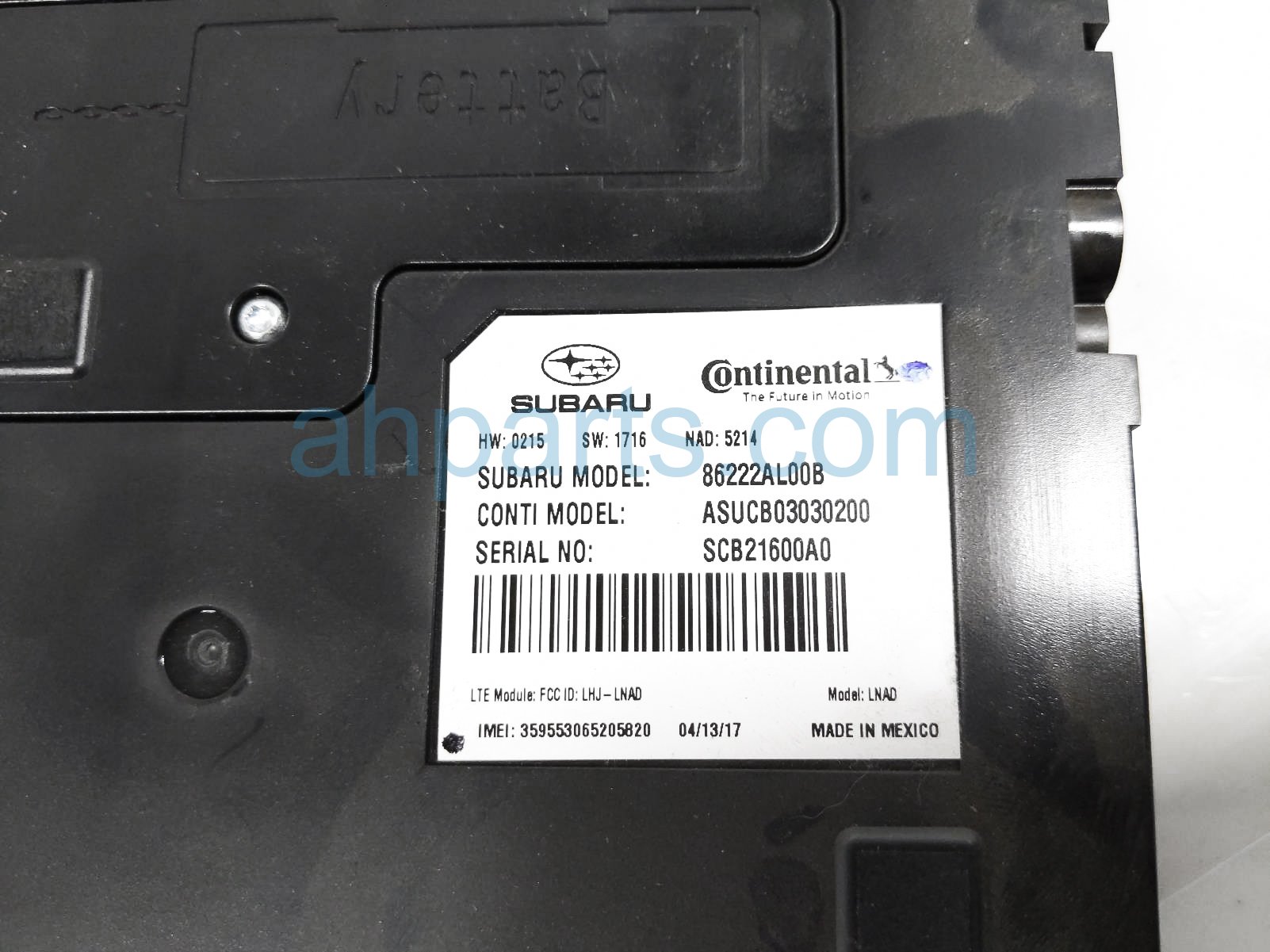 2017 Subaru Outback Legacy telematics control module unit is a used item with a 1 year warranty. This OEM replacement telematics control module unit is genuine and has part numbers 86222AL00B. This Subaru part sells for $40.