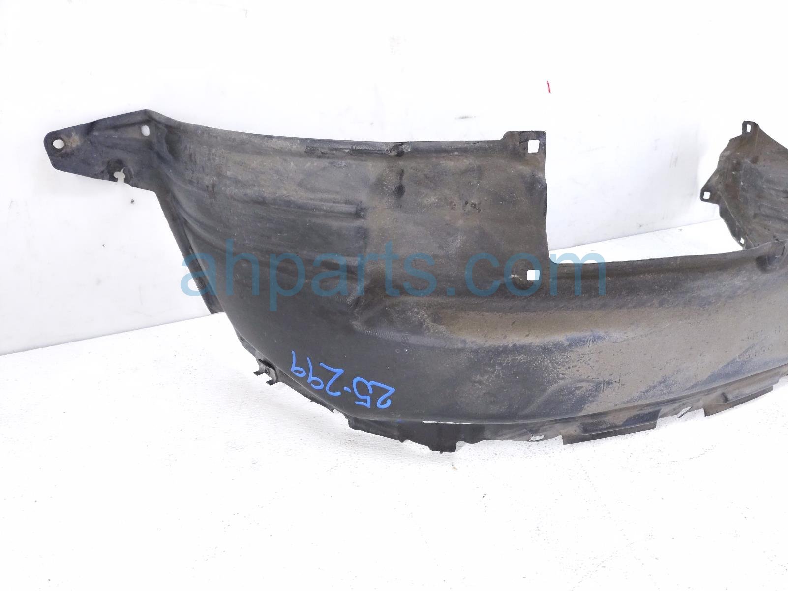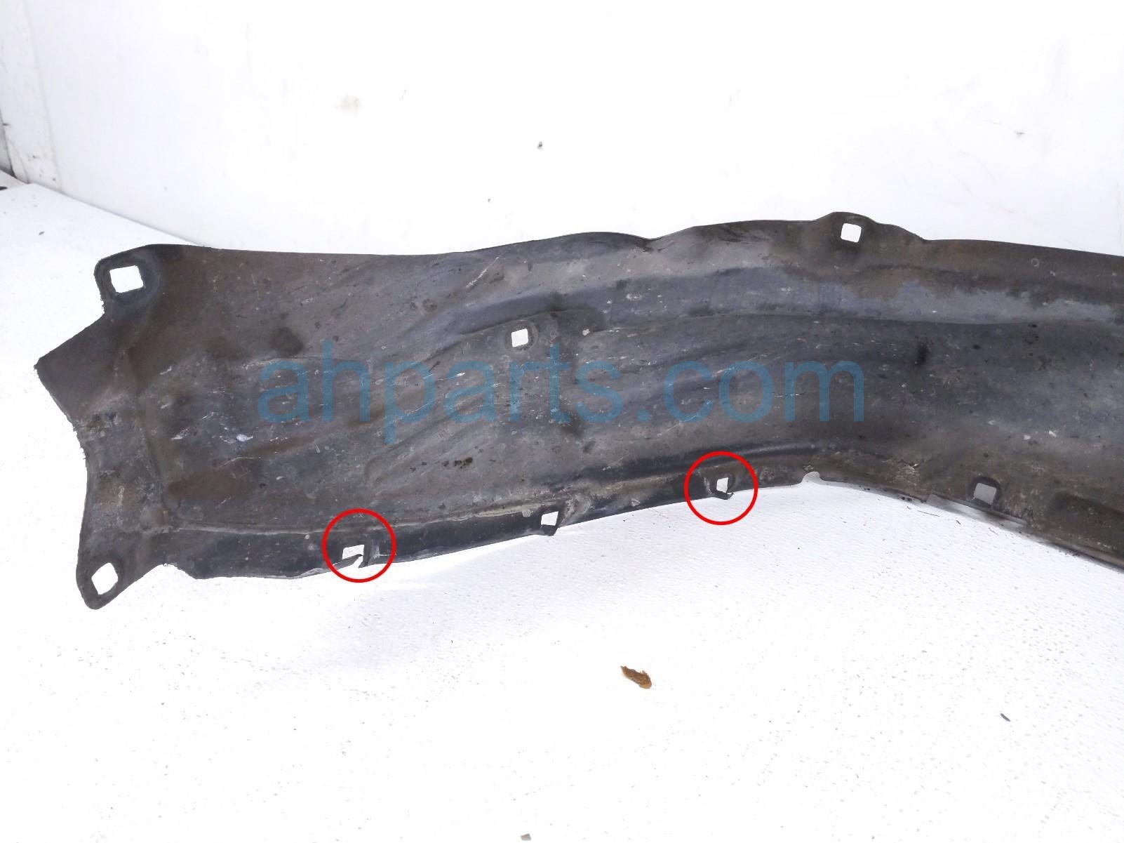 2017 Toyota 4 Runner front driver inner fender liner is a used item with a 1 year warranty. This OEM replacement front driver inner fender liner is genuine and has part numbers 53876-35150, and 5387635150. This Toyota part is for sale (please call for pricing). This item has the following note: 'Item has multiple ripped tabs.'