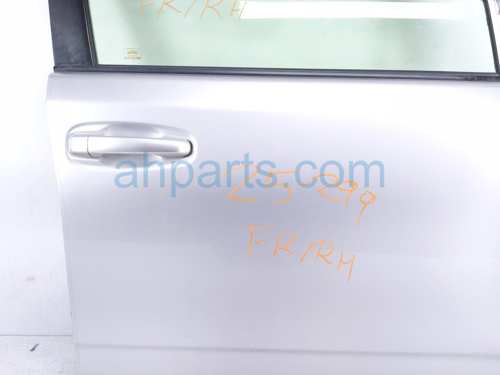 2017 Toyota 4 Runner front passenger door - silver - no mirror/trim is a used item with a 1 year warranty. This OEM replacement front passenger door - silver - no mirror/trim is genuine and has part numbers 67001-35731, 6700135731, 82151-35550, and 8215135550. This Toyota part is for sale (please call for pricing). This item has the following note: 'This item is dented.'