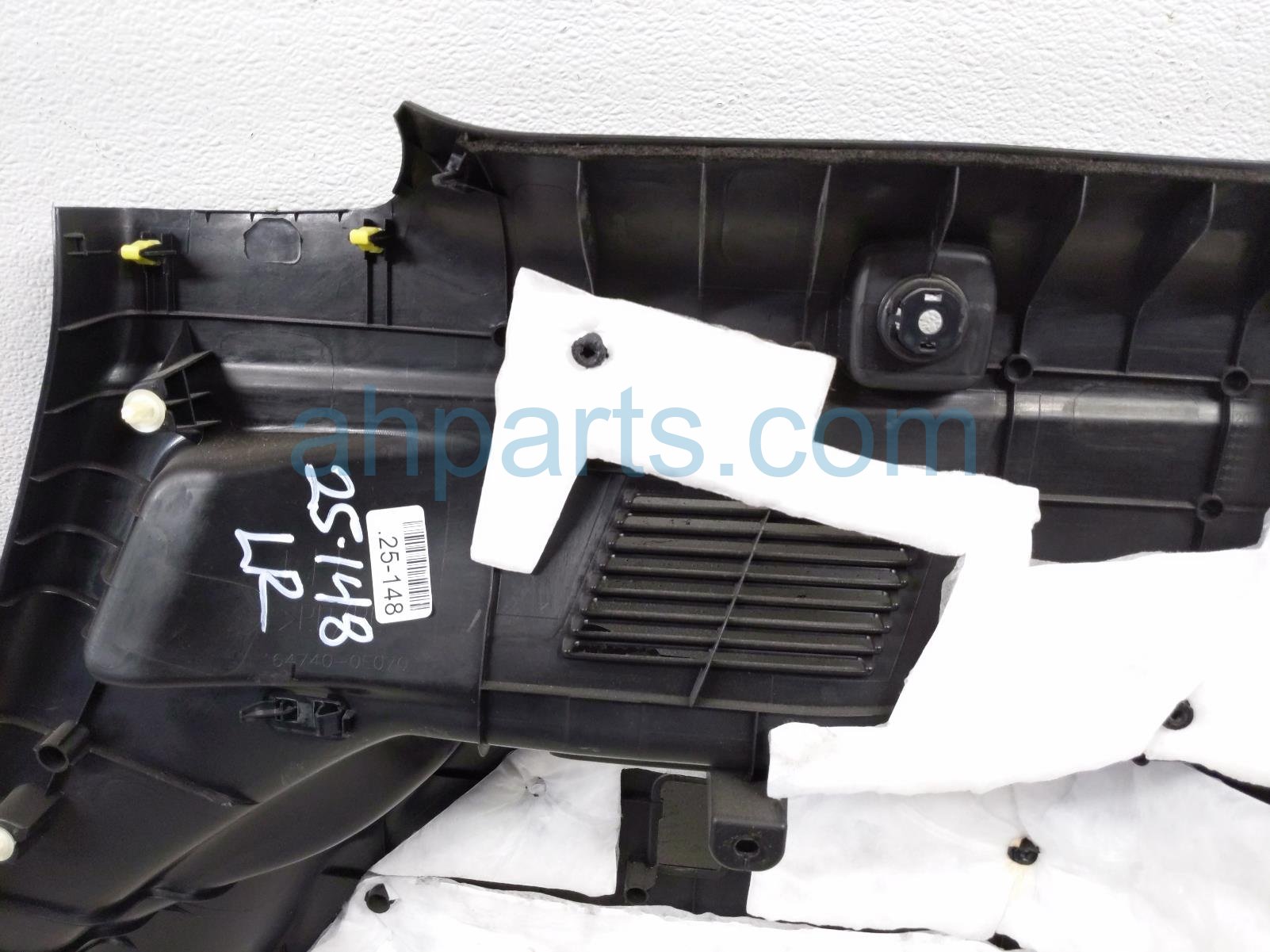 2017 Toyota Highlander driver inner quarter trim panel - blk * is a used item with a 1 year warranty. This OEM replacement driver inner quarter trim panel - blk * is genuine and has part numbers 64740-0E070-C0, and 647400E070C0. This Toyota part sells for $150. This item has the following note: 'Has scuffs/scratches - grade b.'