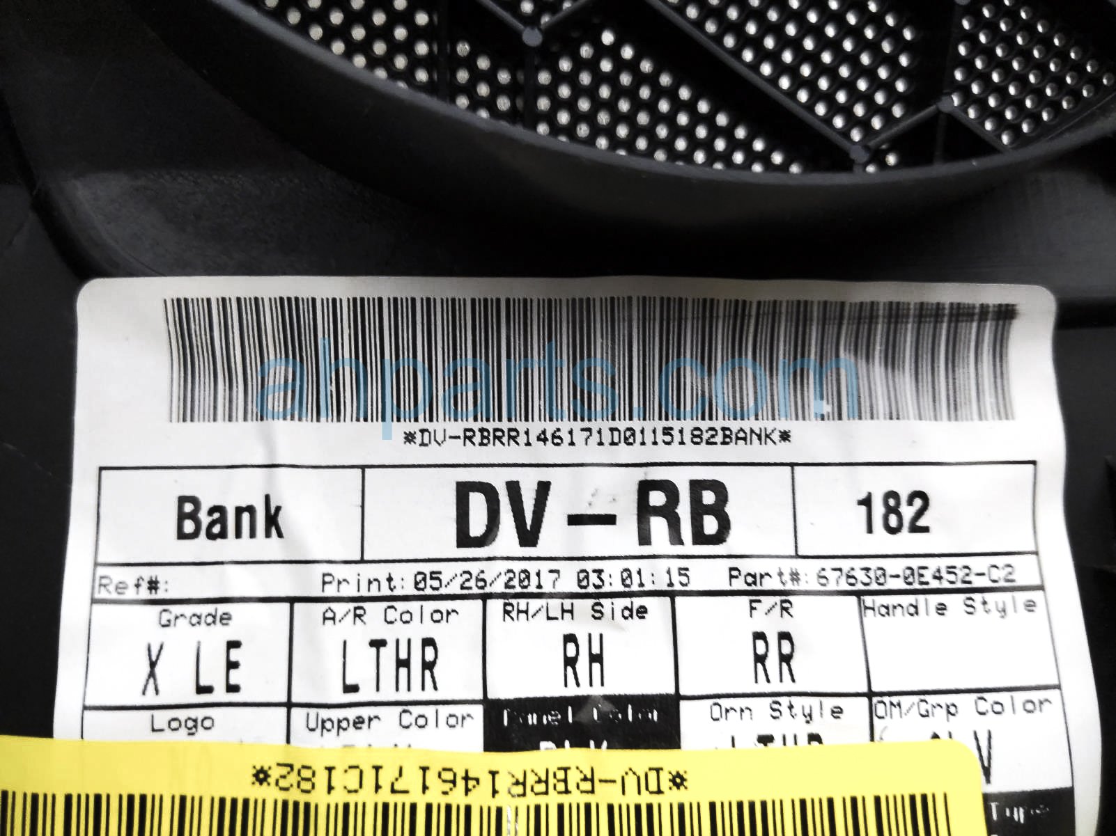 2017 Toyota Highlander rear trim liner rear passenger interior door panel - black is a used item with a 1 year warranty. This OEM replacement rear trim liner rear passenger interior door panel - black is genuine and has part numbers 67630-0E452-C2, and 676300E452C2. This Toyota part sells for $175.