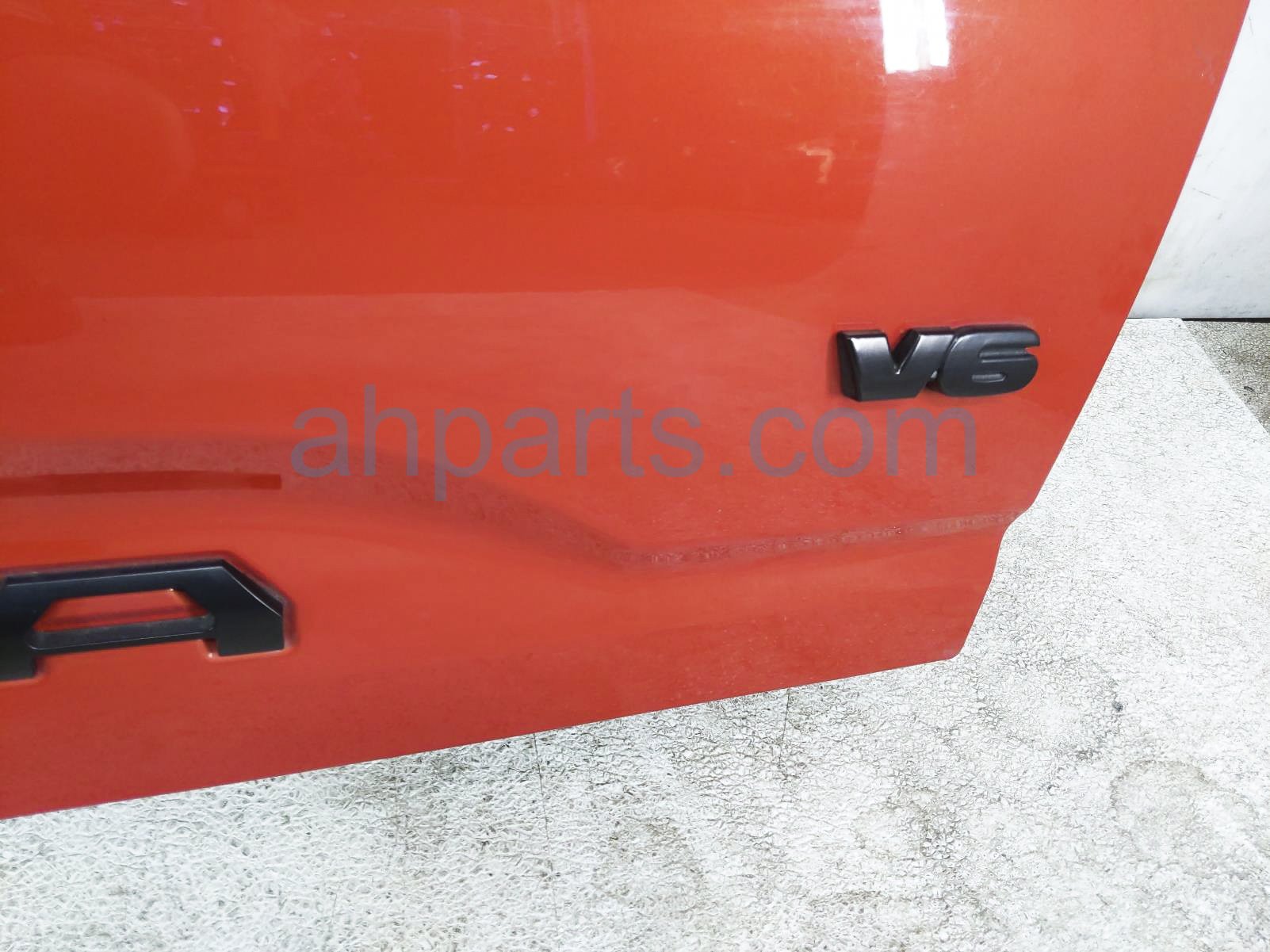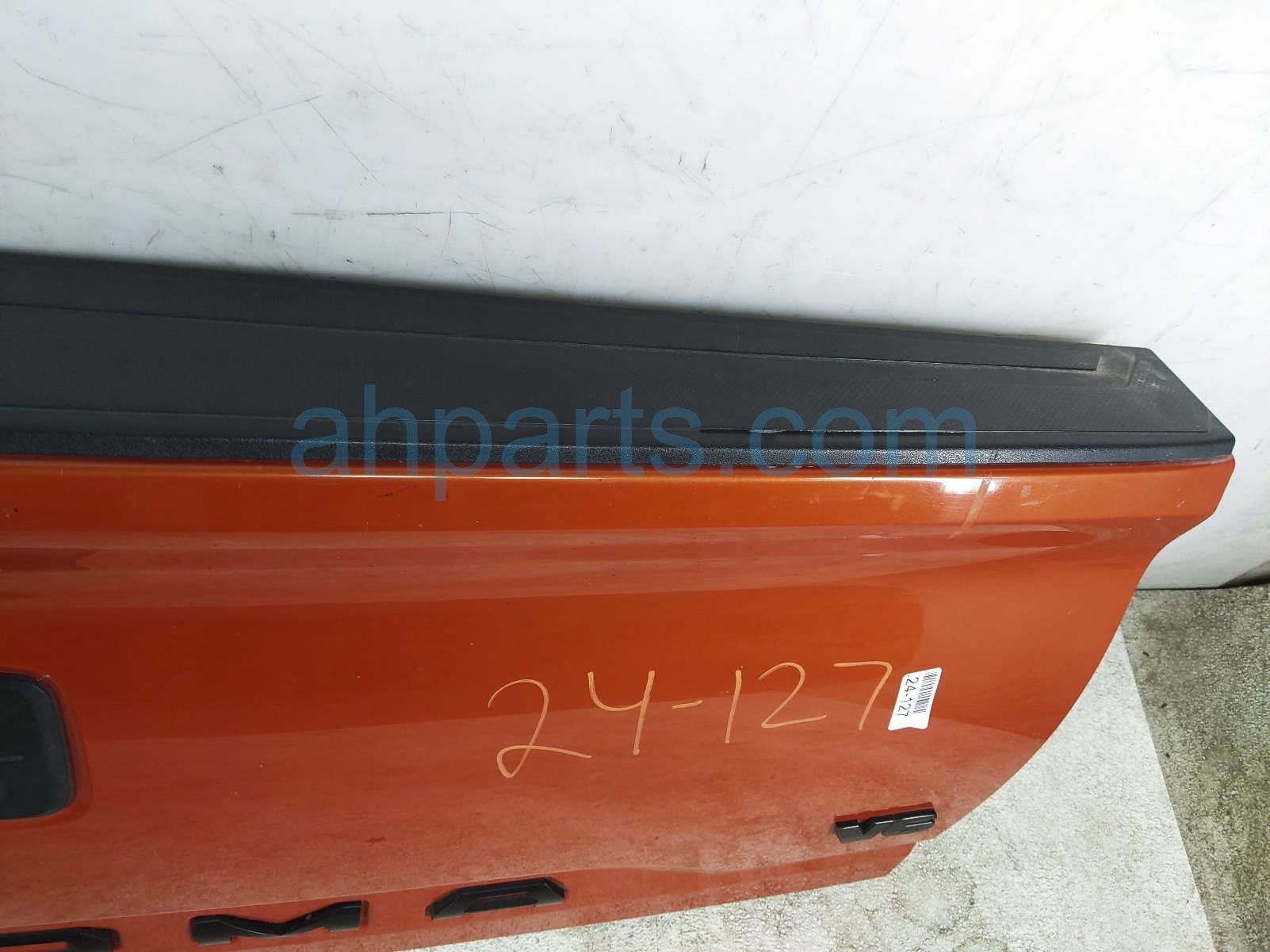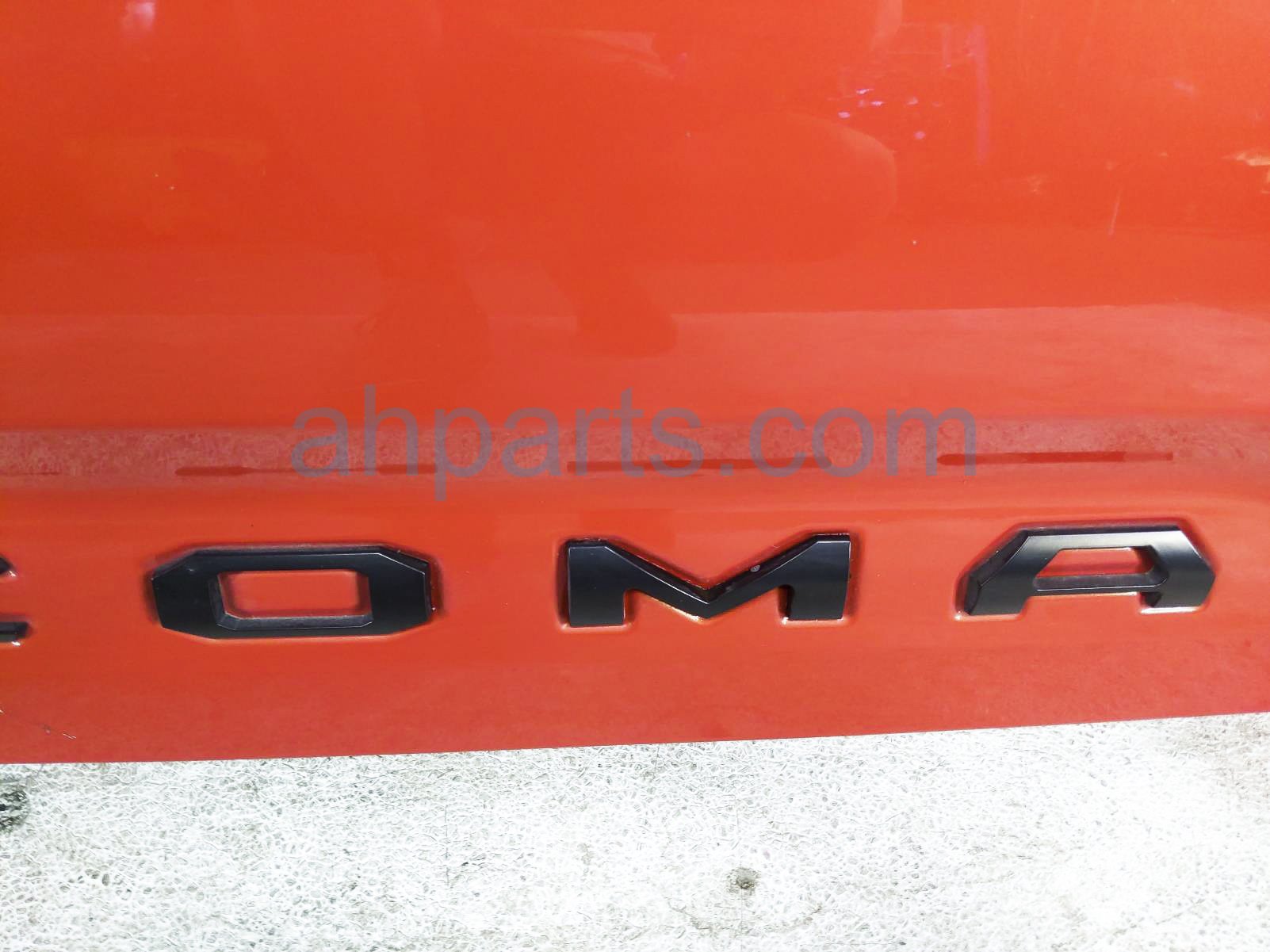 2017 Toyota Tacoma deck trunk lid lift gate / tail gate - orange* is a used item with a 1 year warranty. This OEM replacement deck trunk lid lift gate / tail gate - orange* is genuine and has part numbers 65701-04030, 6570104030, 65717-04030, 6571704030, 65759-04070, 6575904070, 69090-0C090, 690900C090, 86790-04030, and 8679004030. This Toyota part sells for $900. This item has the following note: 'This item has a dent on the left side of the tail gate and some paint chips - grade b.'